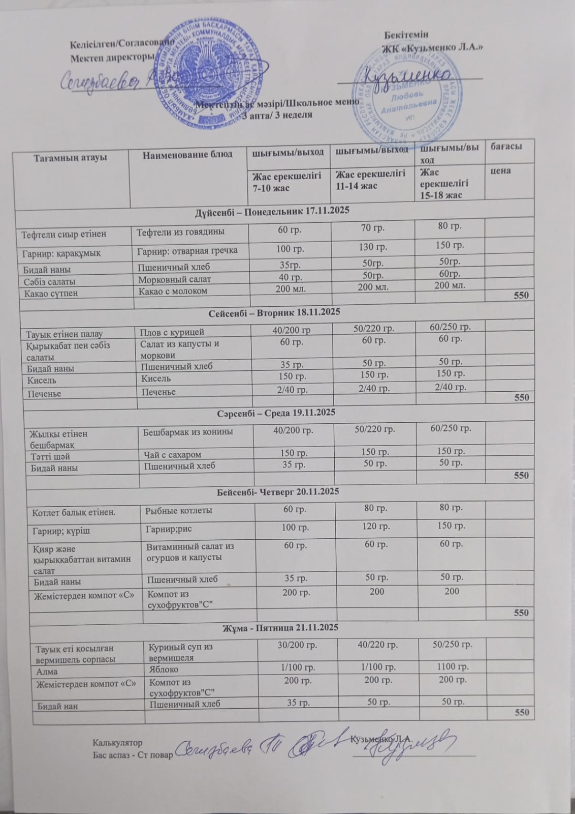 17 қараша 2025 0 1 2 3 4 5 17.11-21.11.2025 жыл аралығындағы мектептің ас мәзірі. Школьное меню на неделю , период с 17.11-21.11.2025 год.