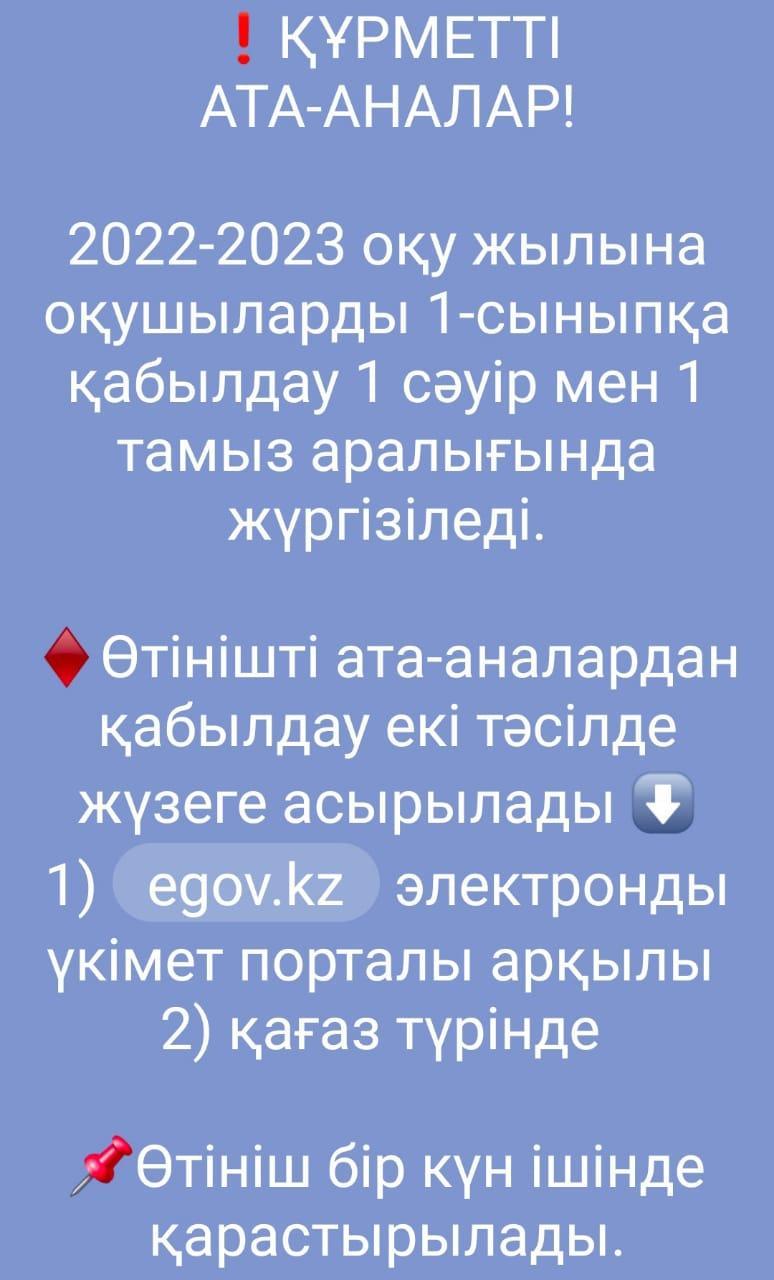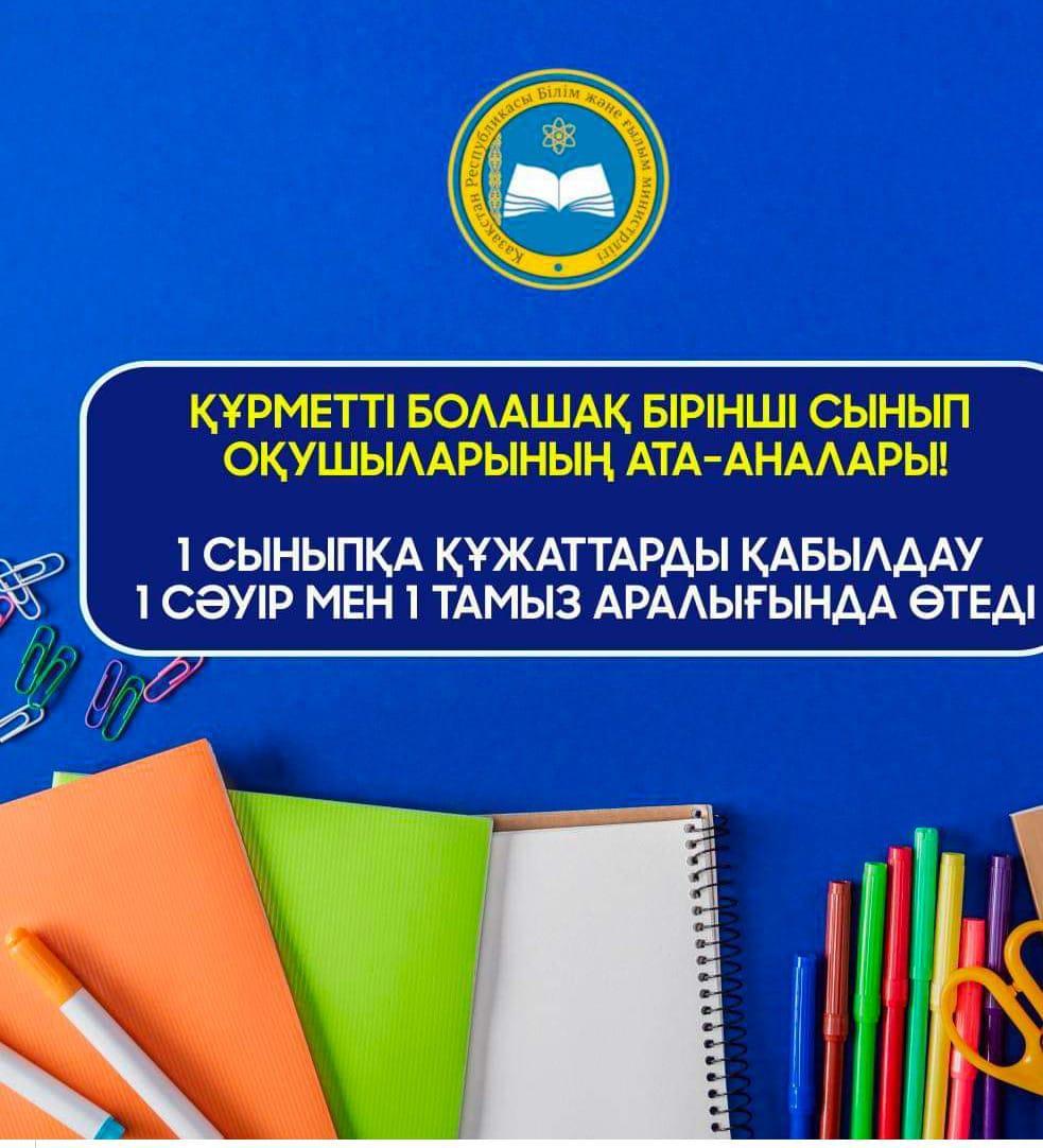 01 сәуір 2022 0 1 2 3 4 5 Құрметті болашақ 1 сынып ата-аналары! №43 орта мектебі 2022 жылдың 01 сәуірінен бастап 1 сыныпқа құжаттарды қабылдау басталды.