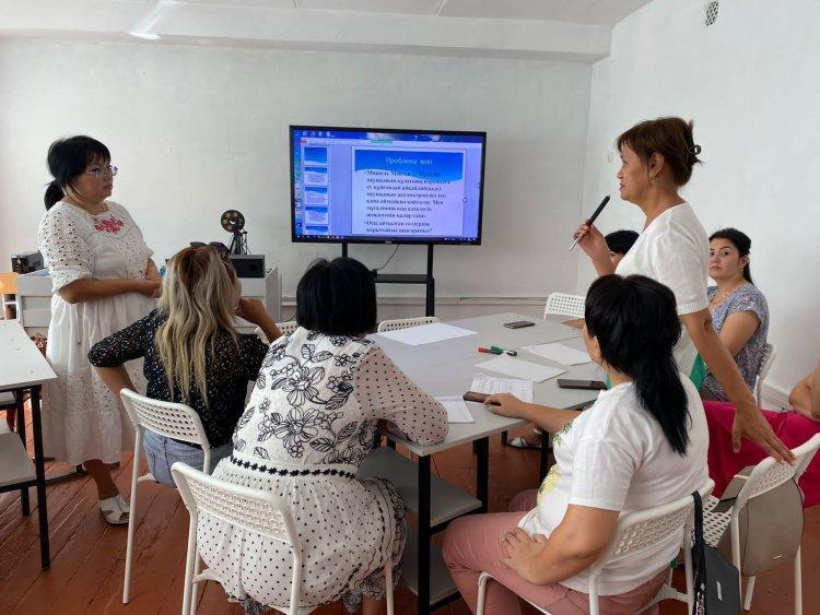 "Сабақта тиімді әдіс-тәсілдерді қолдану арқылы оқушылардың пәнге деген қызығушылығы мен белсенділігін арттыру" тақырыбында "Қазақ тілі мен әдебиеті",Орыс тілі мен әдебиеті","Ағылшын тілі","Тарих" әдістемелік бірлестіктерге семинар-практикум өткізілді.Семинарды өткізгендер ДОІЖО Мырзаева Б.К.,Шоева Б.Ж. Жаңа оқу жылында әріптестерге әдістемелік көмек берілді. Пән мұғалімдері әдіс-тәсілдердің тиімділіктерін анықтап, өн бойынан өткізіп, сергіту сәтінде сергіп қалды.