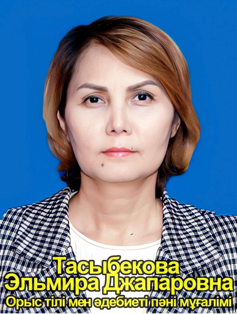 Орыс тілі мен әдебиеті пәнінің мұғалімі Тасыбекова Эльмира Джапаровна Еңбек өтілі -28 жыл 6 ай Білімі: Жоғары Педагогикалық шебері: Педагог зерттеуші Мұғалімнің жеткен жетістіктері