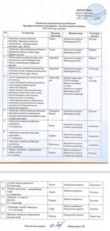 2023-2024 оқу жылында мектепте тамақтандыру ұйымдастыру жұмыстары