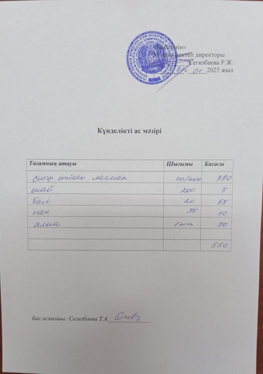 31 қаңтар 2025 0 1 2 3 4 5 31.01.2025 ж тегін ыстық тамақтанатын білім алушылардың ас мәзірі. 31.01.2025 ж тегін ыстық тамақтанатын білім алушылардың ас мәзірі.