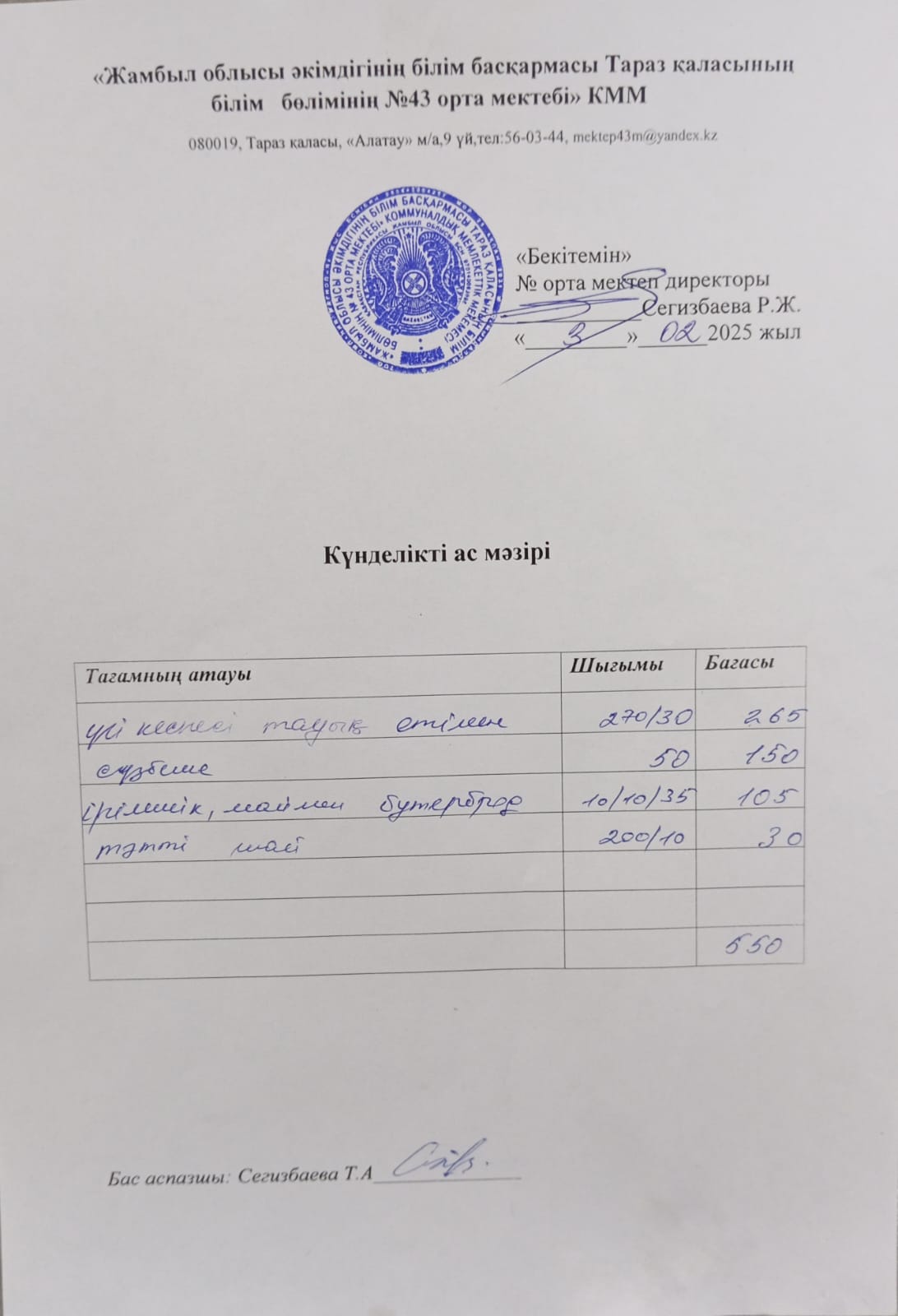 03 ақпан 2025 0 1 2 3 4 5 03.02.2025 ж тегін ыстық тамақтанатын білім алушылардың ас мәзірі. 03.02.2025 ж тегін ыстық тамақтанатын білім алушылардың ас мәзірі.