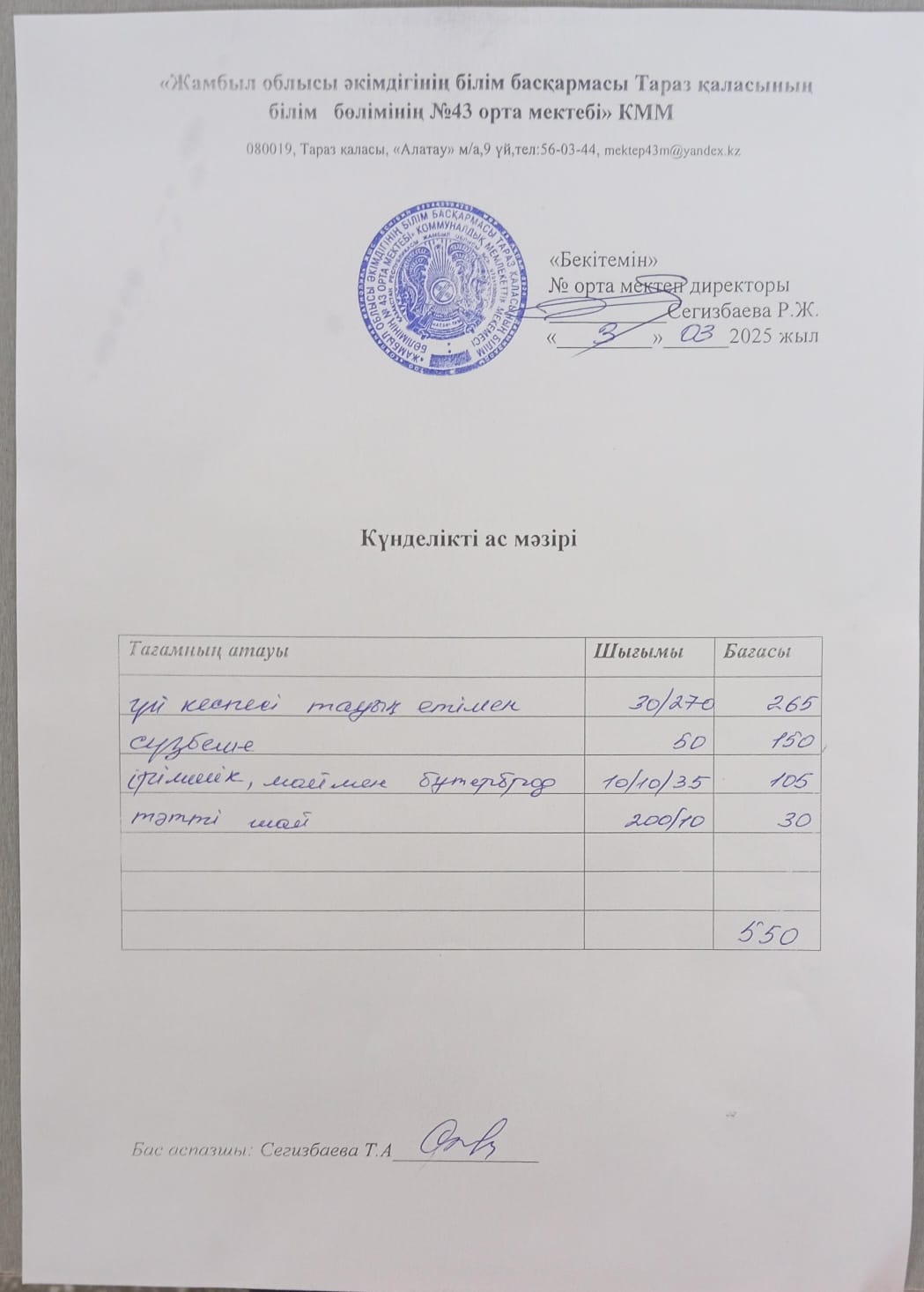 03 наурыз 2025 0 1 2 3 4 5 03.03.2025 ж тегін ыстық тамақтанатын білім алушылардың ас мәзірі. 03.03.2025 ж тегін ыстық тамақтанатын білім алушылардың ас мәзірі.