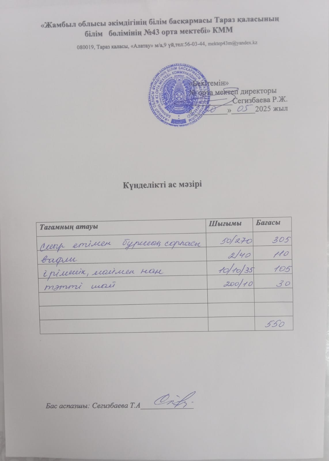 20 мамыр 2025 0 1 2 3 4 5 20.05.2025 ж тегін ыстық тамақтанатын білім алушылардың ас мәзірі. 20.05.2025 ж тегін ыстық тамақтанатын білім алушылардың ас мәзірі.