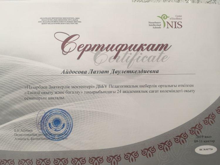 Алматы қаласы педагогикалық шеберлік орталығы филиалының директоры Б.К. Асубаевтың "Тиімді оқыту және бағалау" тақырыбында академиялық оқу семинары біздің мектебімізде өткізілді. Осы семинарға өз біліктіліктерін арттыру мақсатында, мектебіміздің 42 ұстазы қатысып, 24 академиялық сағат көлеміндегі сертификатпен марапатталды.