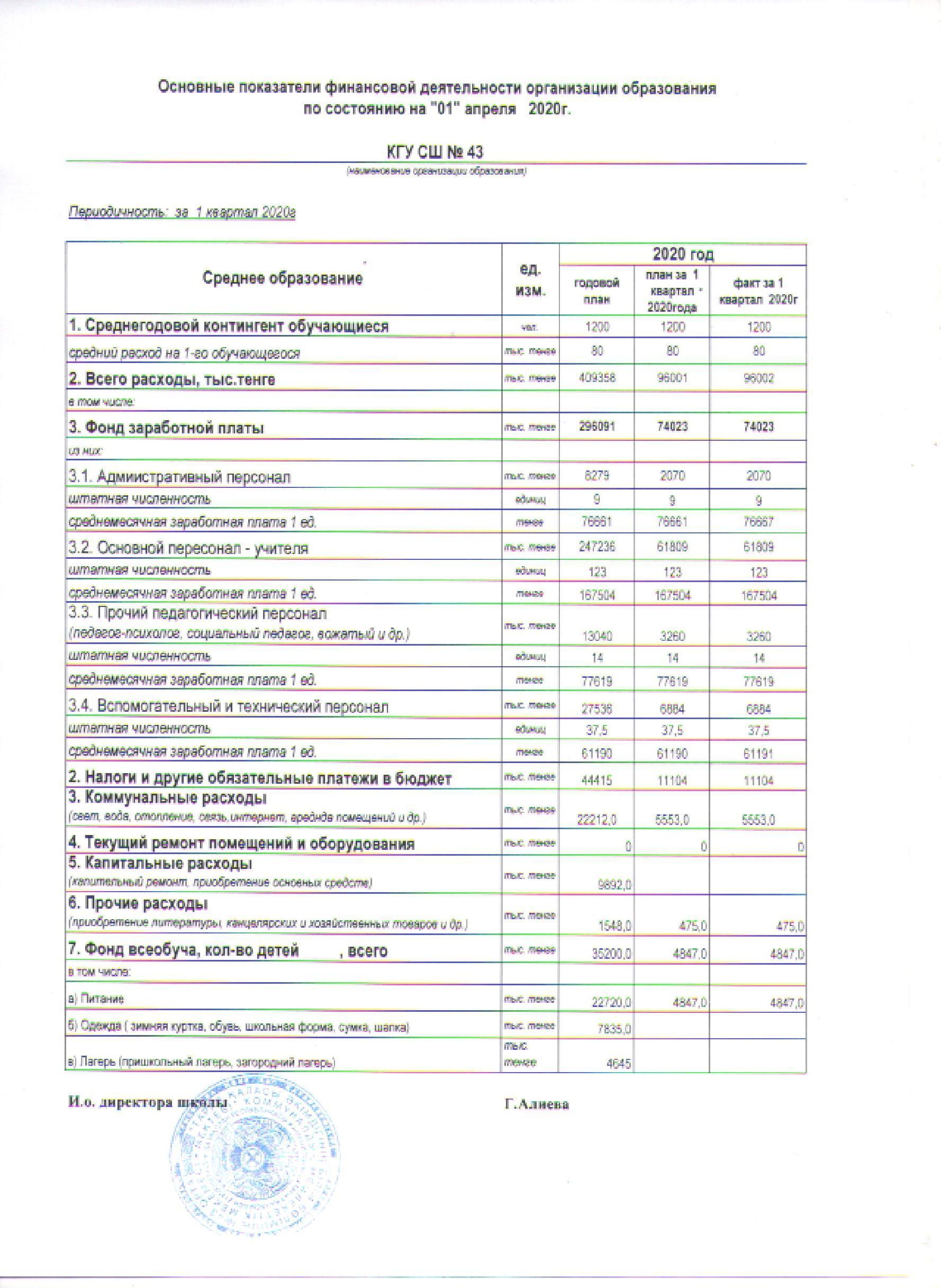 Қаржылық қызметтің көрсеткіші 03.03.2020 » 43 орта мектебі