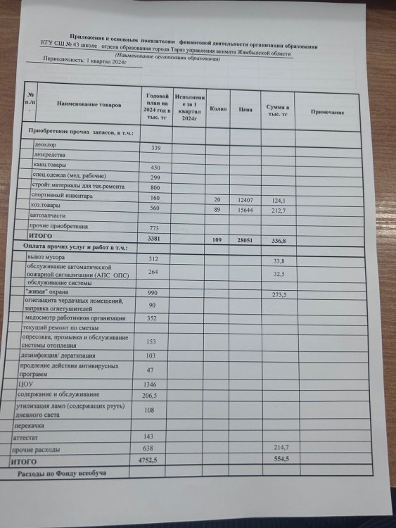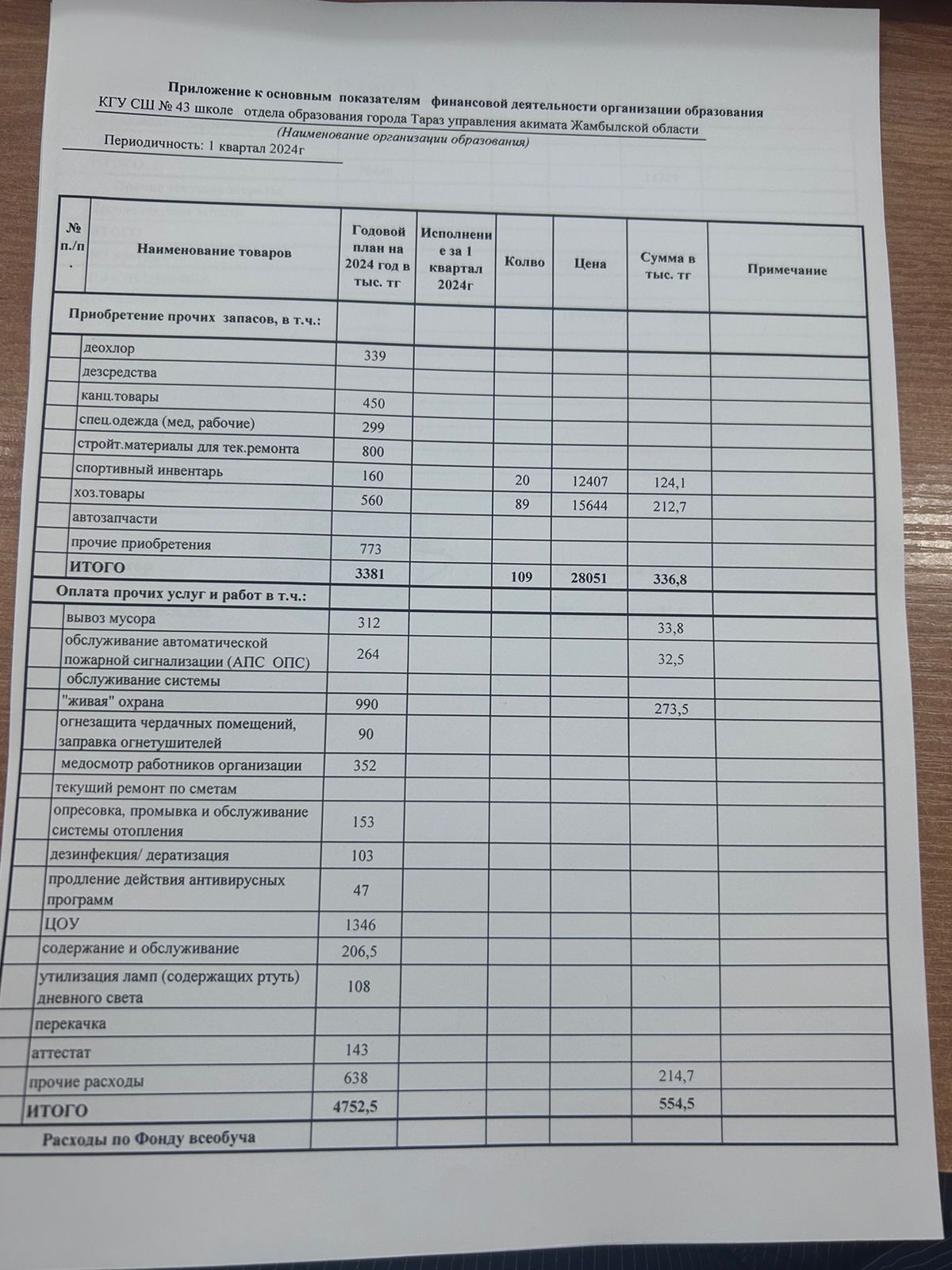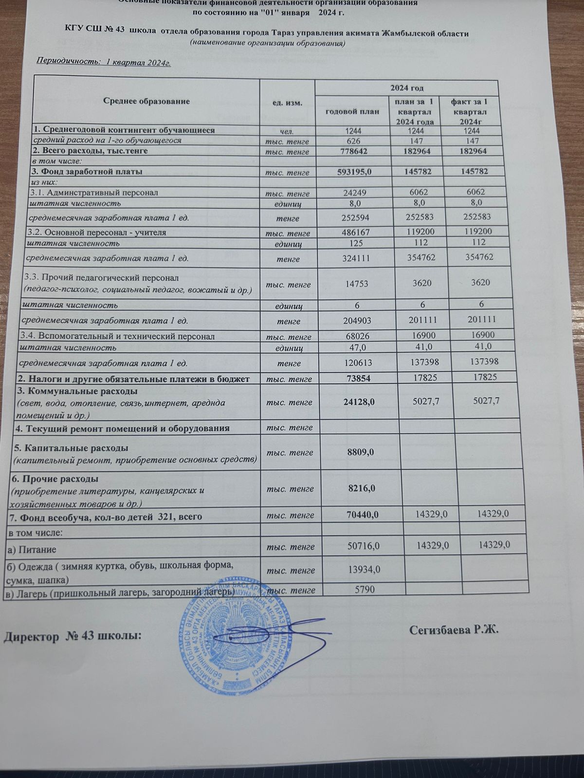 Ашық бюджет 1 квартал 2024 жылдың » 43 орта мектебі