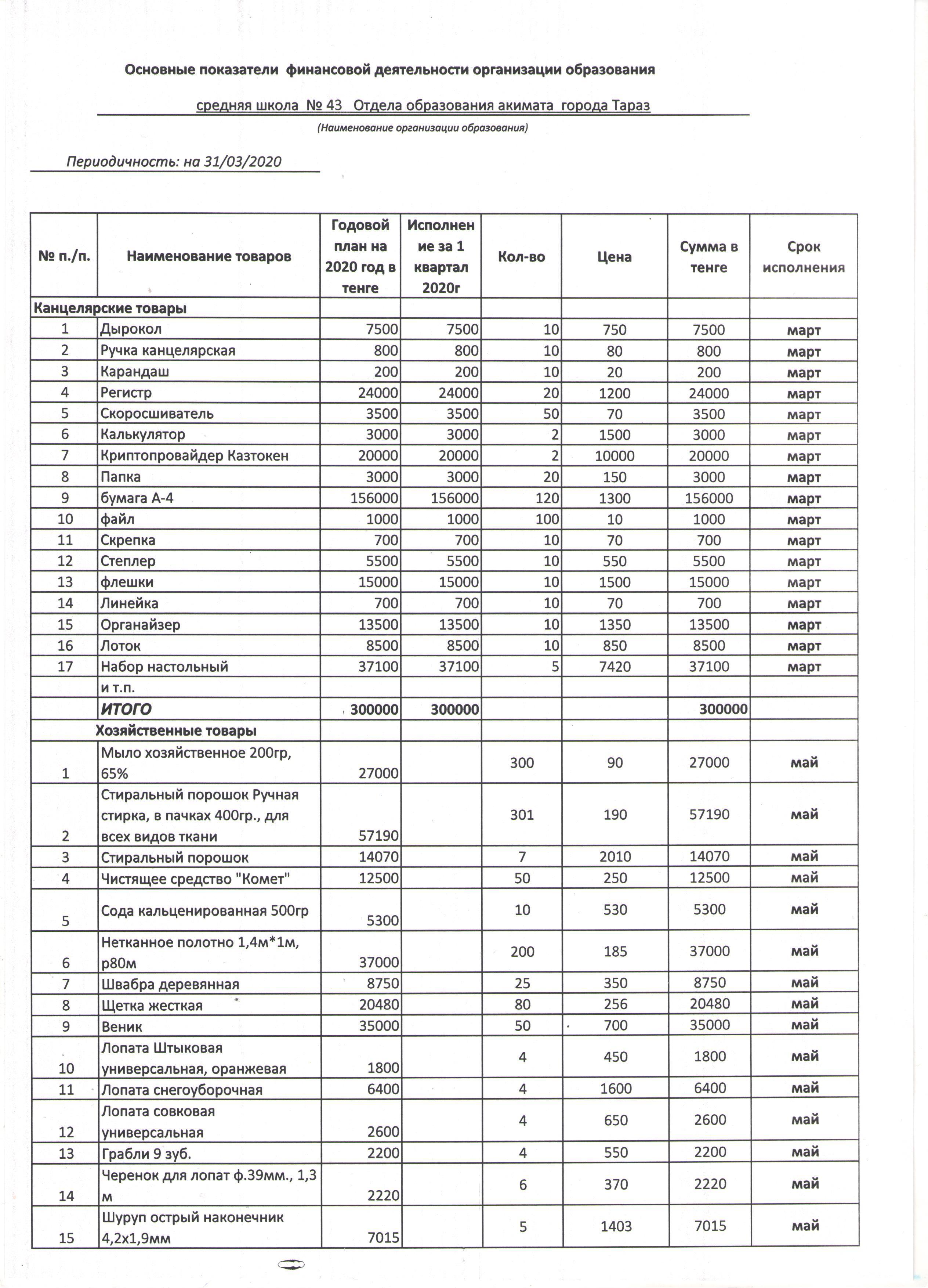 Қаржылық қызметтің негізгі көрсеткіші 03.03.2020 » 43 орта мектебі