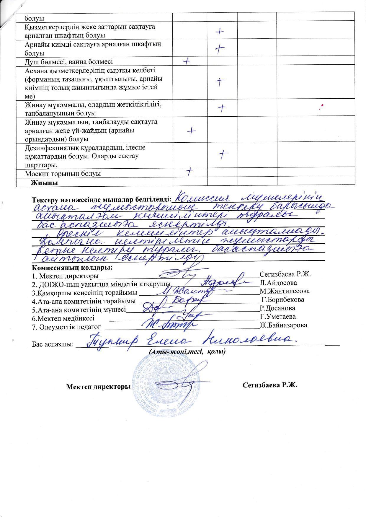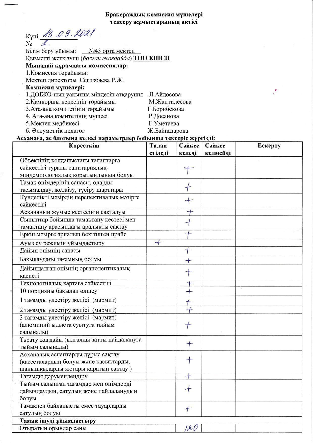Бракераждық комиссия мүшелері тексеру жұмыстарының актісі » 43 орта мектебі