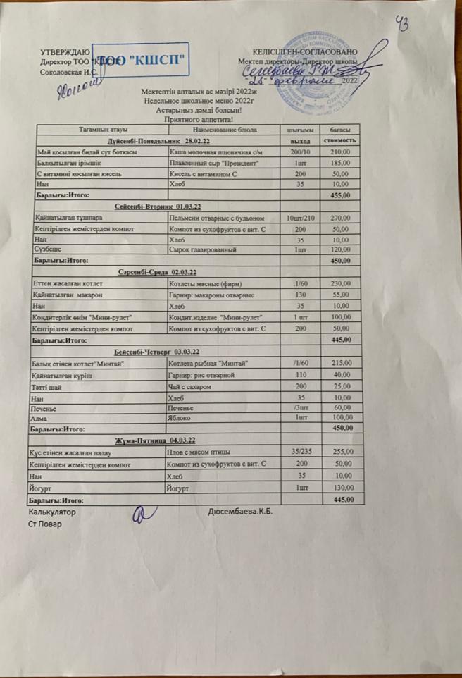 2022 жылғы 28.02.-04.03.2022мектептің апталық ас мәзірі. » 43 орта мектебі