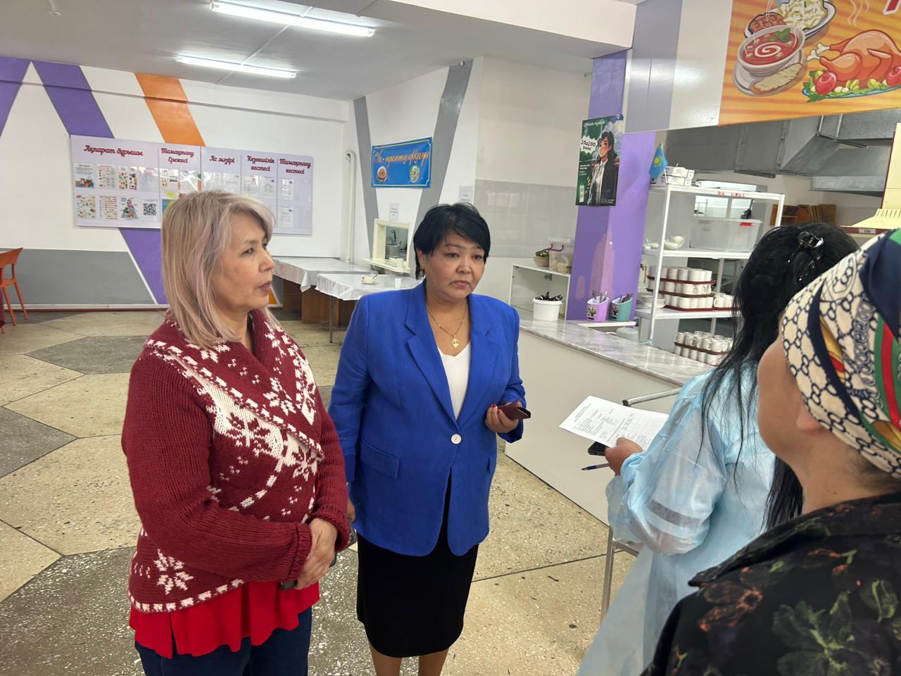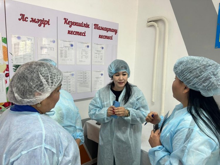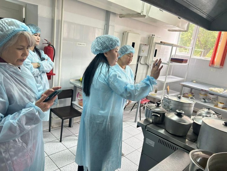 30.09.2024 жылы тамақтану сапасын бақылау бойынша бракераж комиссия мүшелері асхананың жалпы жұмысын, тауар көршілестігін, шикі өнімдердің сақталуын