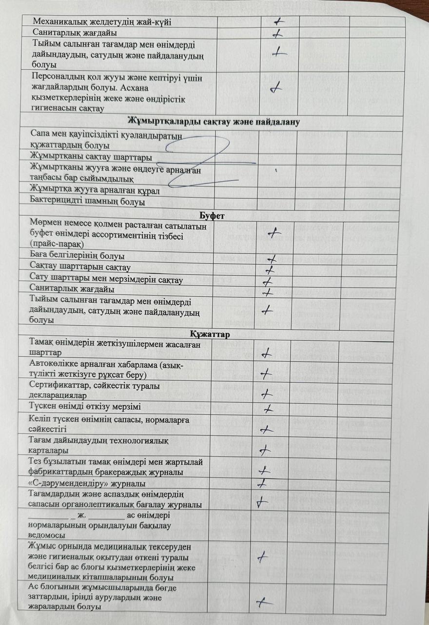 24.12.2024 жылы бракераж комиссиясы тамақтанудың сапасын бақылау бойынша жалпы асхананың жұмысын тексеріліп, Акт толтырылып, отырыс жасалып, хаттамал
