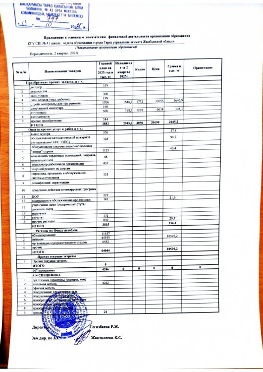 Открытый бюджет. 2 квартал 2025 жыл » 43 орта мектебі