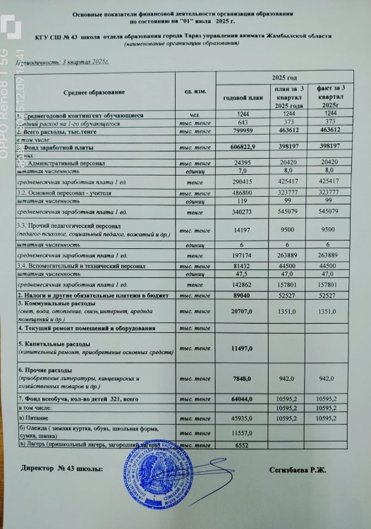 Открытый бюджет. 3 квартал 2025 жыл » 43 орта мектебі
