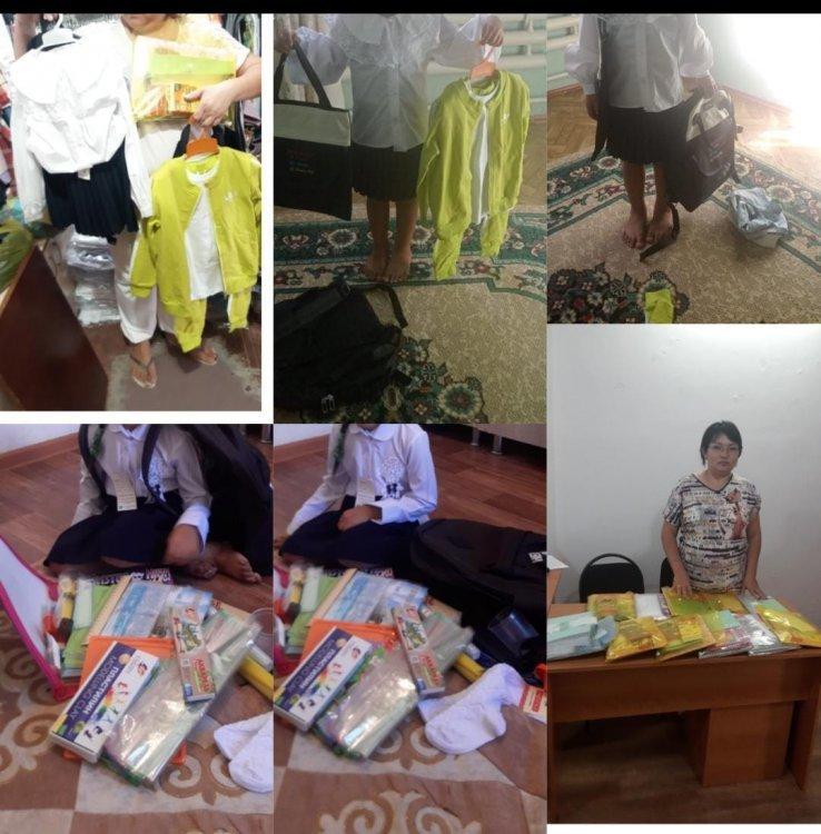 "✓43 мектеп ұжымының тарапынан Мектепке жол" акциясы бойынша 9-сыныптың екі оқушысының біріне ақ жейде, белдемше, рюкзак, екіншісіне спорттық аяқ киім, белдемше берілді. 8-сыныптың екі оқушысынының біріне рюкзак,біріне кеңсе заттары сатып алып берілді. ✓25 мектептің екі оқушысын мектеп формасымен, рюкзак, спорттық киім, кеңсе заттарымен қамтамасыз етті. Алда "Мектепке жол" акциясы бойынша бір оқушыға рюкзак, 8 оқушыға кеңсе заттары берілу жоспарланып отыр. Ата-ана тарапының сұранысы бойынша "Мектепке жол" қайырымдылық акциясы жалғасуда. Балаға мейірім сыйлайық! Қайырымдылық жасауға асығатын жандарды демеушілік жасауға шақырамыз!