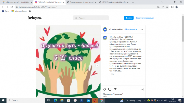 "Әке жолы- ізгі жол" атты әкелердің мектептегі онкүндігі » 43 орта мектебі