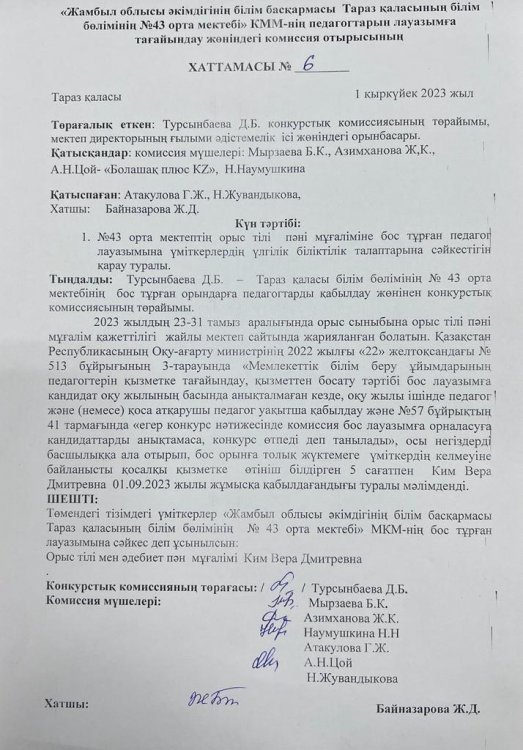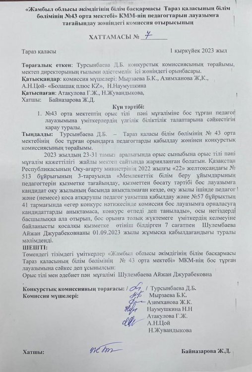 Жұмыспен қамту бойынша мәлімет » 43 орта мектебі
