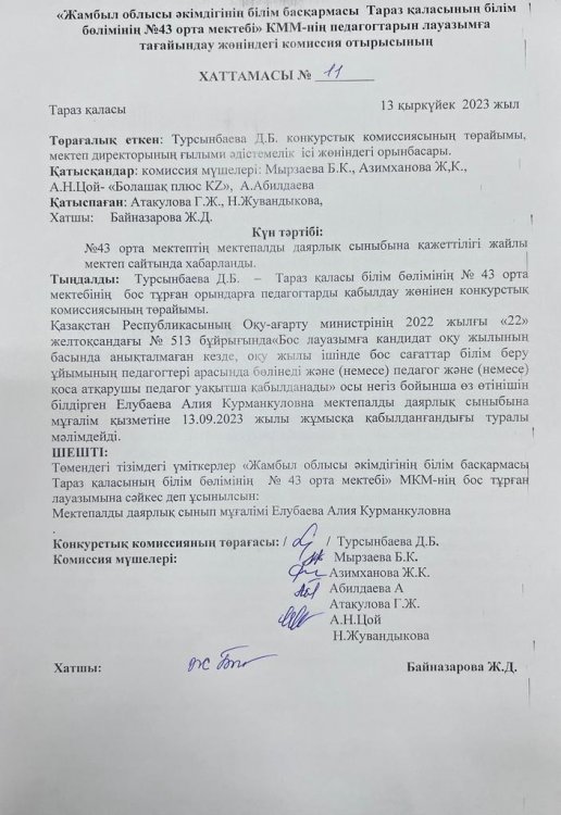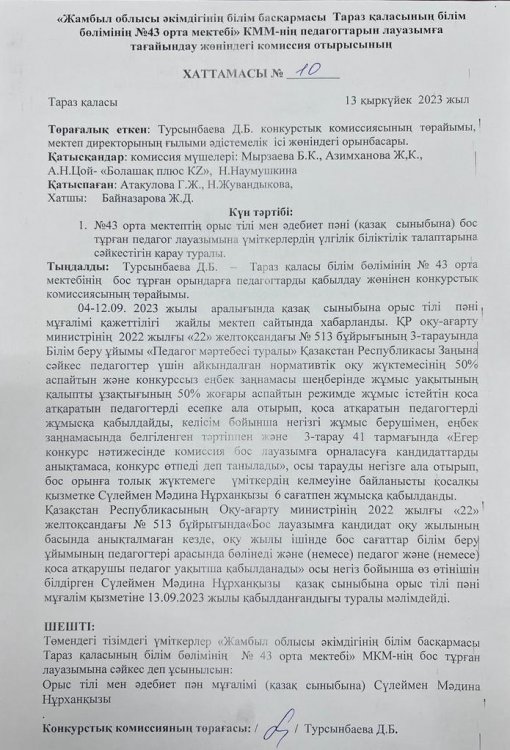 Жұмыспен қамту бойынша мәлімет » 43 орта мектебі
