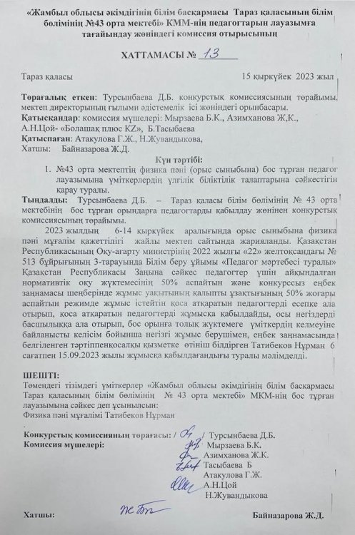отдела образования города Тараз