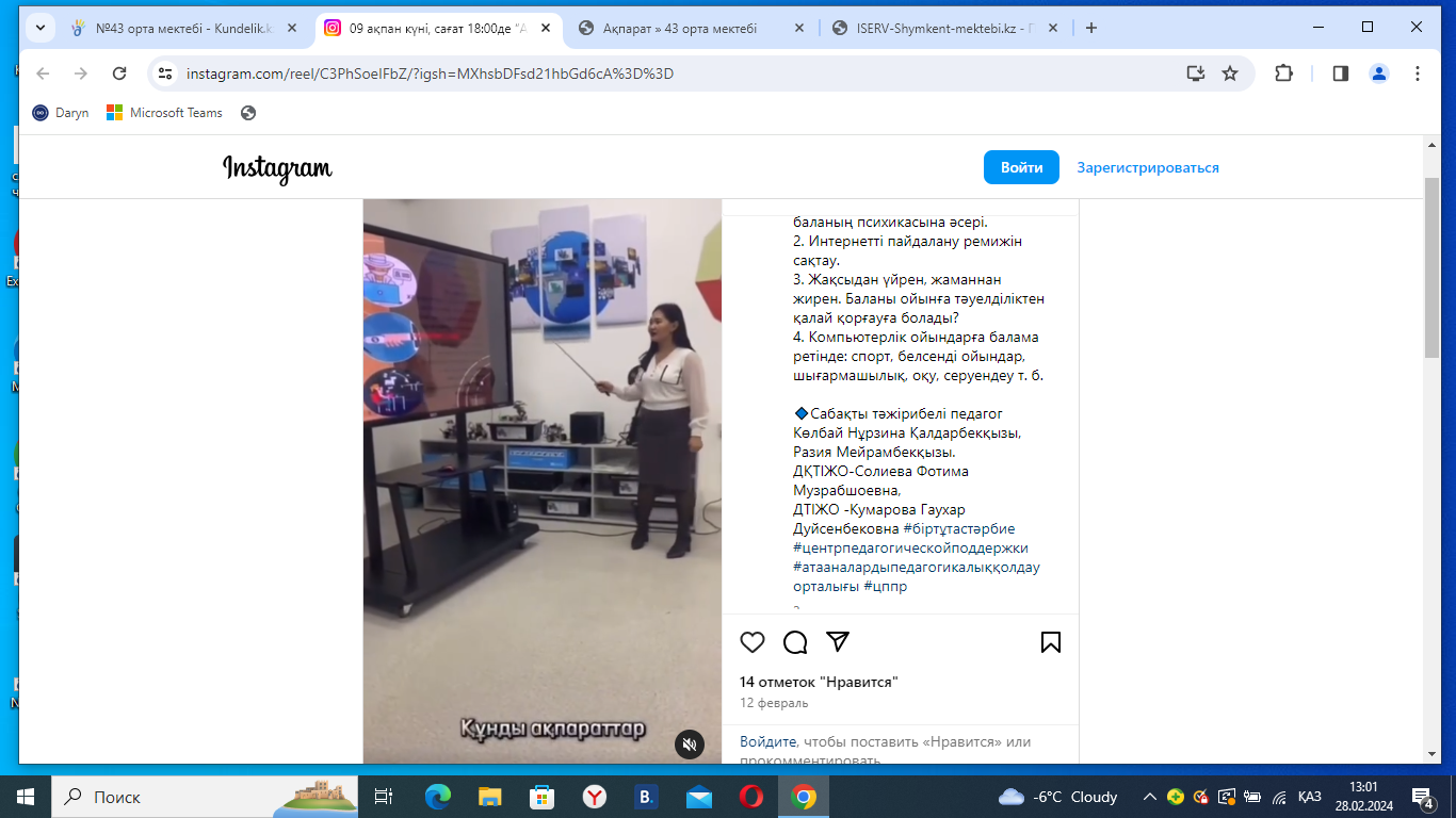“Ата-аналарды педагогикалық қолдау” » 43 орта мектебі