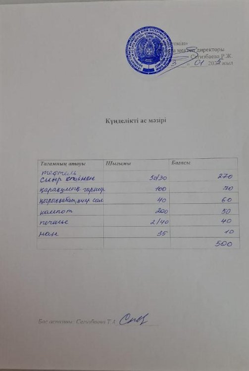 » » 13.01.2025 ж тегін ыстық тамақтанатын білім алушылардың ас мәзірі.