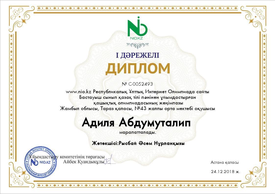Республикалық Ұлттық интернет олимпиада » 43 орта мектебі