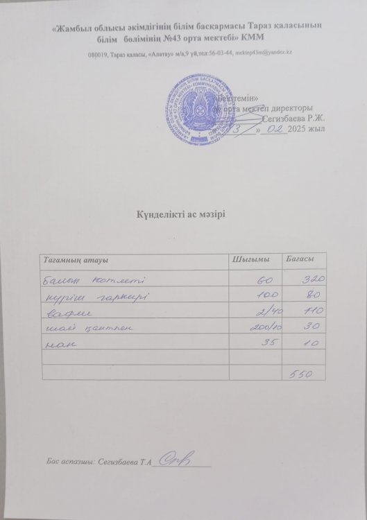 13 февраль 2025 0 1 2 3 4 5 13.02.2025 ж тегін ыстық тамақтанатын білім алушылардың ас мәзірі. 13.02.2025 ж тегін ыстық тамақтанатын білім алушылардың ас мәзірі.