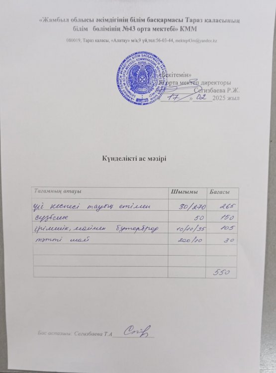 17 февраль 2025 0 1 2 3 4 5 17.02.2025 ж тегін ыстық тамақтанатын білім алушылардың ас мәзірі. 17.02.2025 ж тегін ыстық тамақтанатын білім алушылардың ас мәзірі.