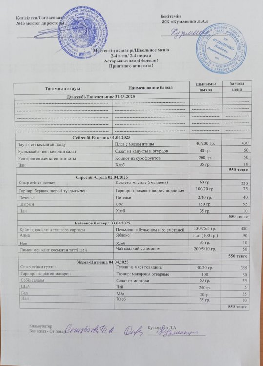 01 сәуір 2025 0 1 2 3 4 5 01.04.2025 ж тегін ыстық тамақтанатын білім алушылардың ас мәзірі. 01.04.2025 ж тегін ыстық тамақтанатын білім алушылардың ас мәзірі.
