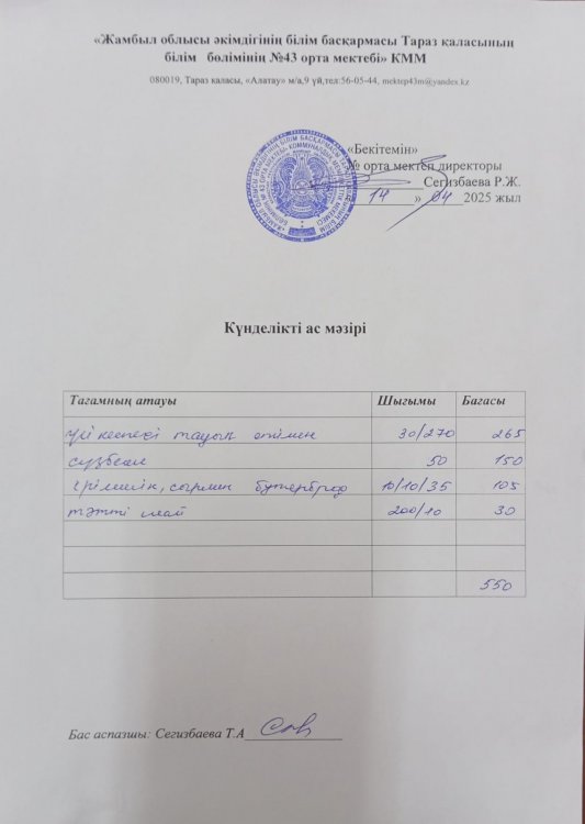 14 сәуір 2025 0 1 2 3 4 5 14.04.2025 ж тегін ыстық тамақтанатын білім алушылардың ас мәзірі. 14.04.2025 ж тегін ыстық тамақтанатын білім алушылардың ас мәзірі.