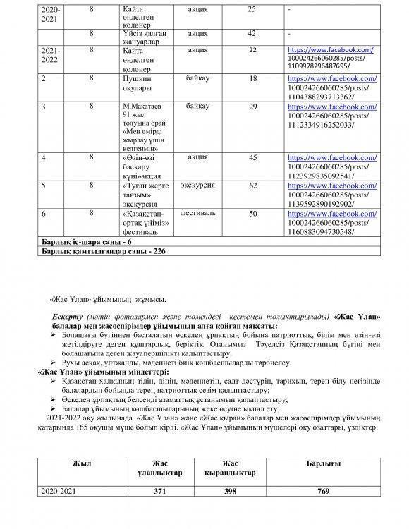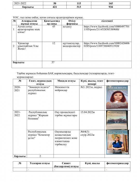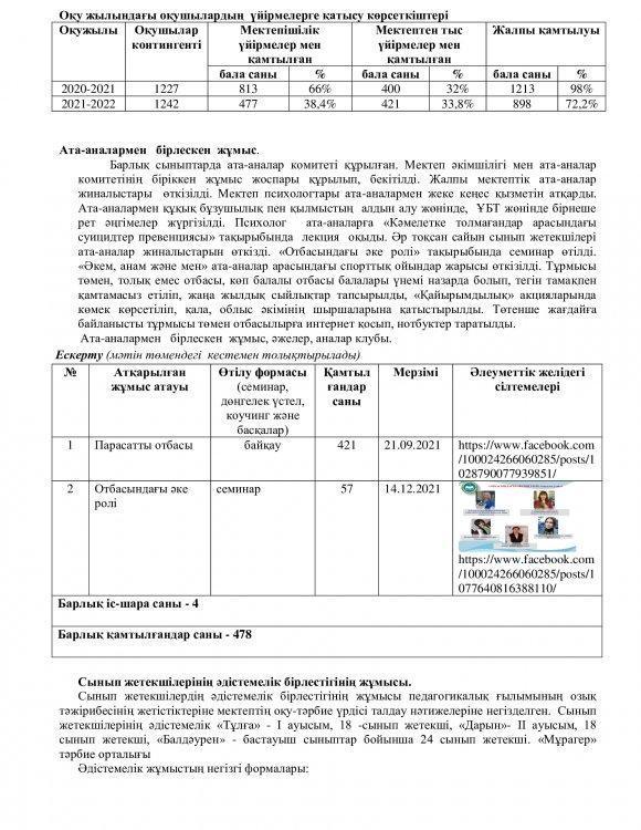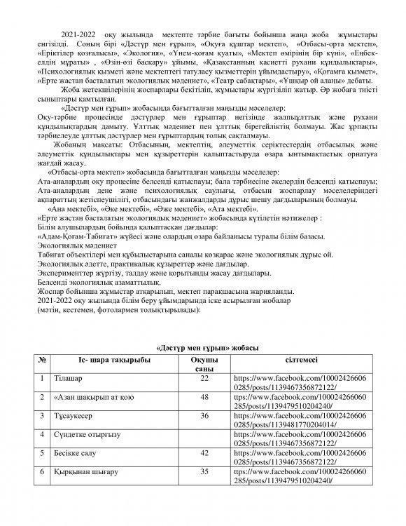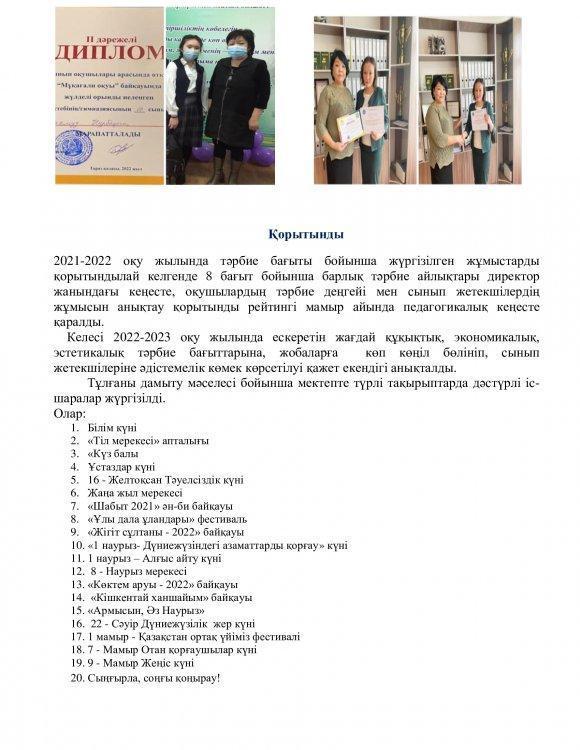 2021-2022 оқу жылында атқарылған тәрбие жұмыстарының сараптамасы