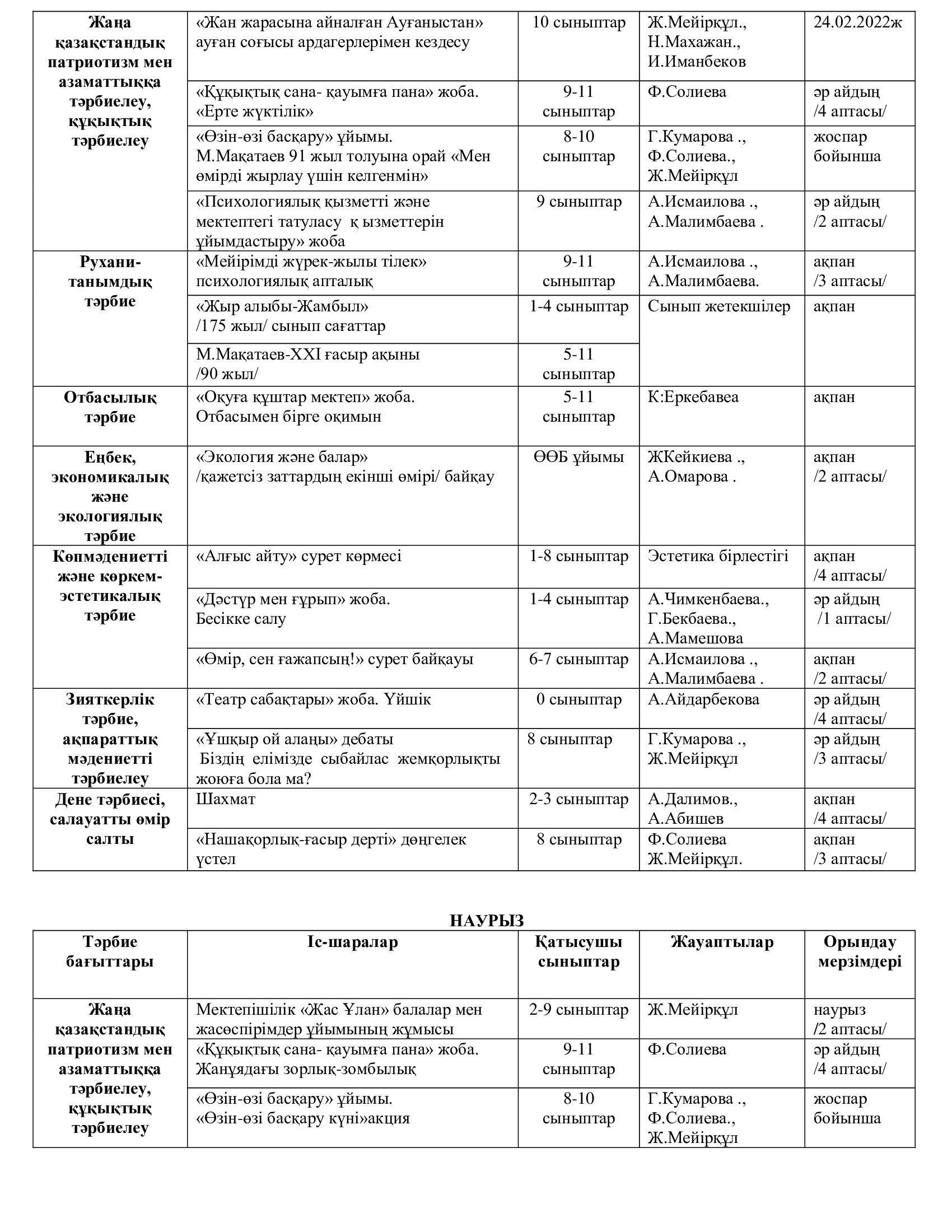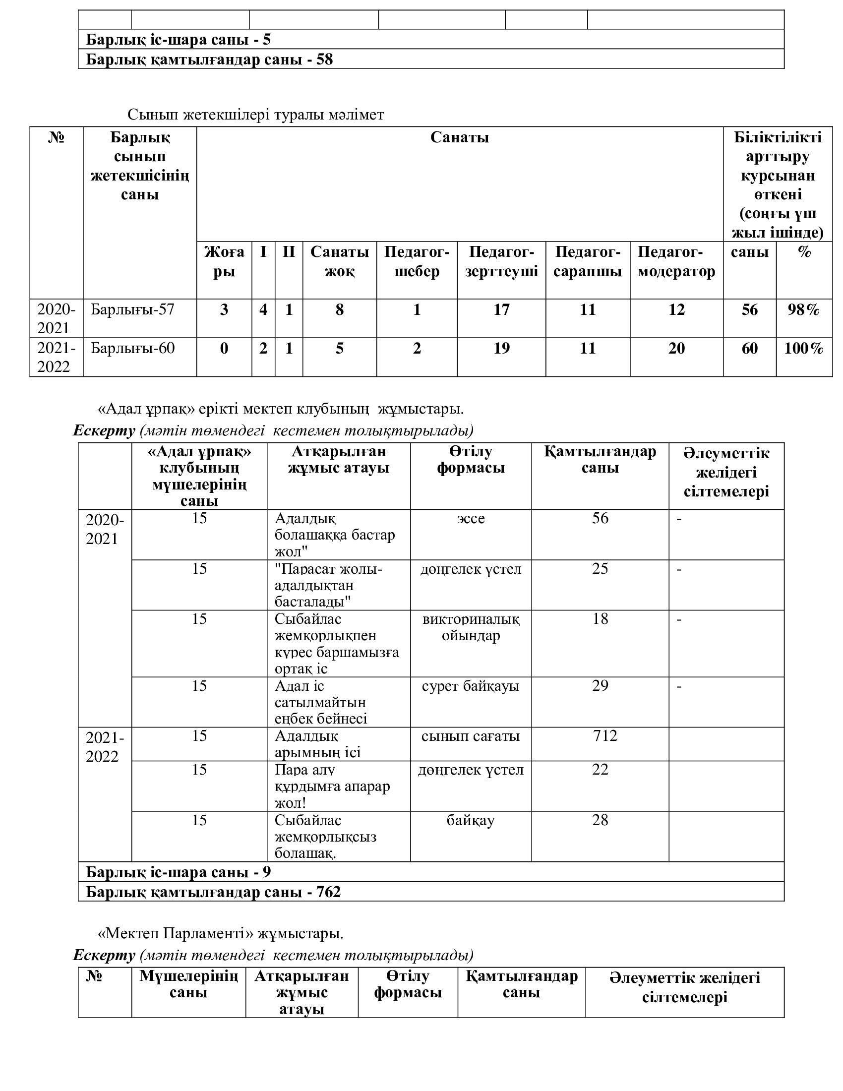 Мақсаты: жан-жақты білімді, өмір сүруге бейім, өзіндік ой-талғамы бар, адамгершілігі жоғары, қабілетті жеке тұлғаны қалыптастыру және білім сапасын арттыру, пандемея, шектеу шаралары кезеңіндегі олқылықтардың орнын толтыру.