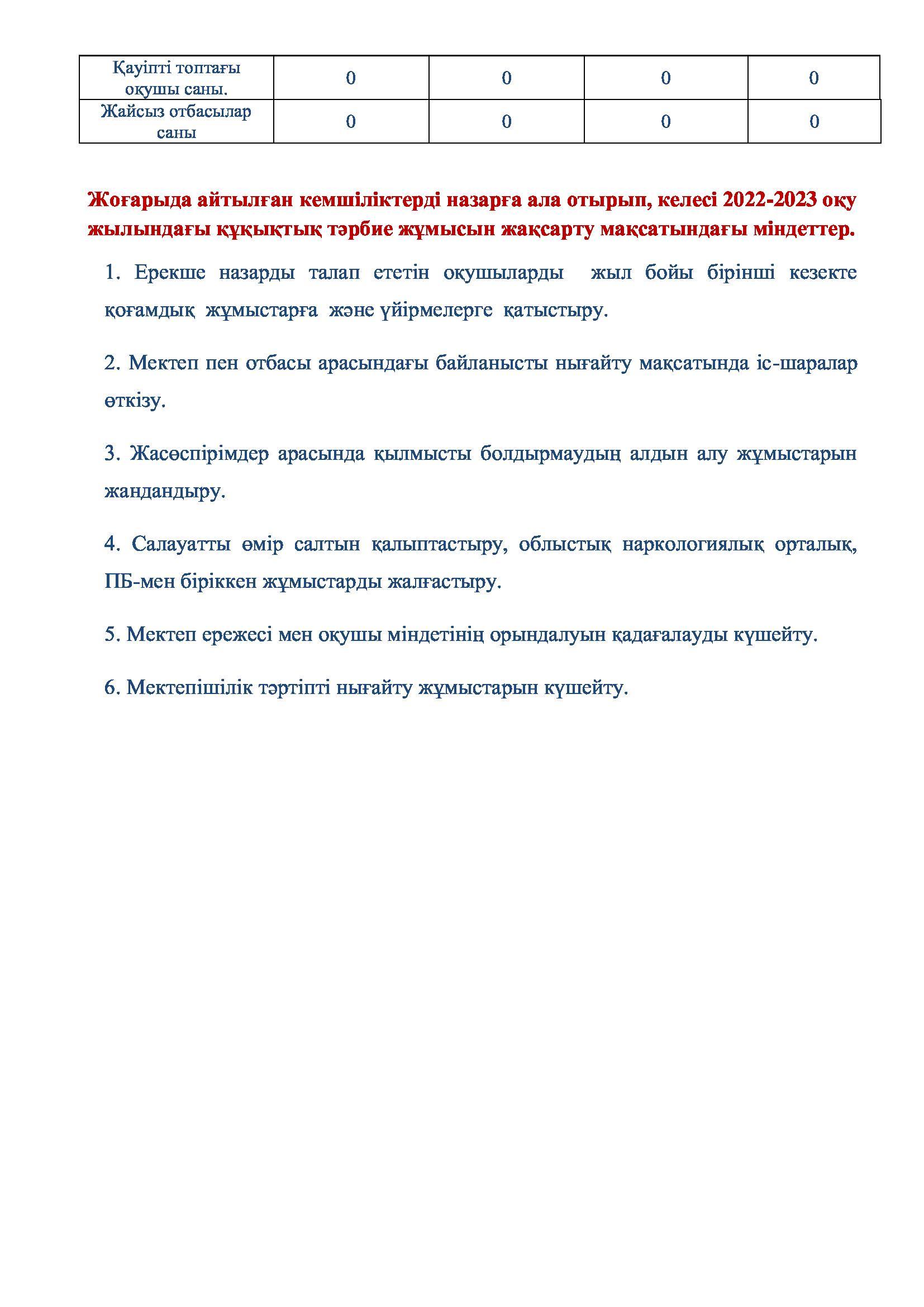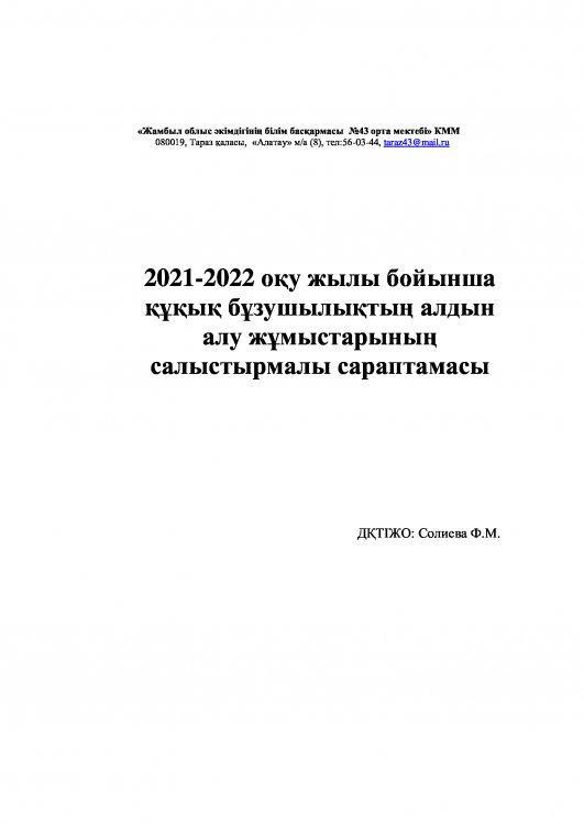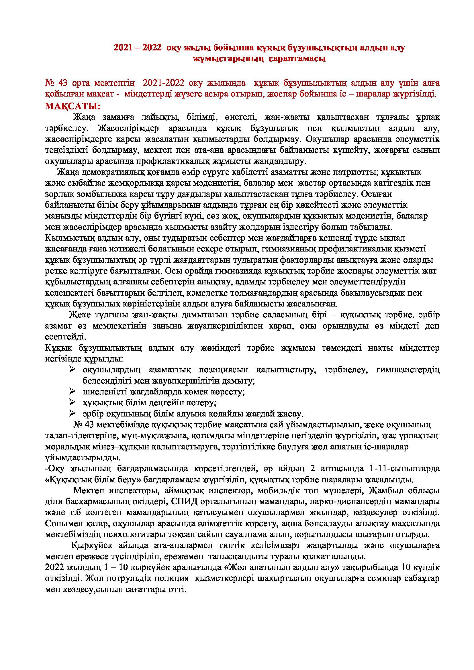2021-2022 оқу жылы. Құқық бұзушылықтың алдын алу жұмысының сараптамасы. https://43-taraz.mektebi.kz/o-detskom-sade/administraciya/260-2021-2022-ou-zhyly-y-bzushylyty-aldyn-alu-zhmysyny-saraptamasy.html https://43-taraz.mektebi.kz/o-detskom-sade/administraciya/260-2021-2022-ou-zhyly-y-bzushylyty-aldyn-alu-zhmysyny-saraptamasy.html МАҚСАТЫ: