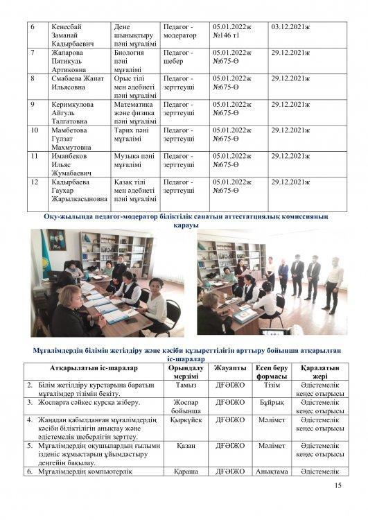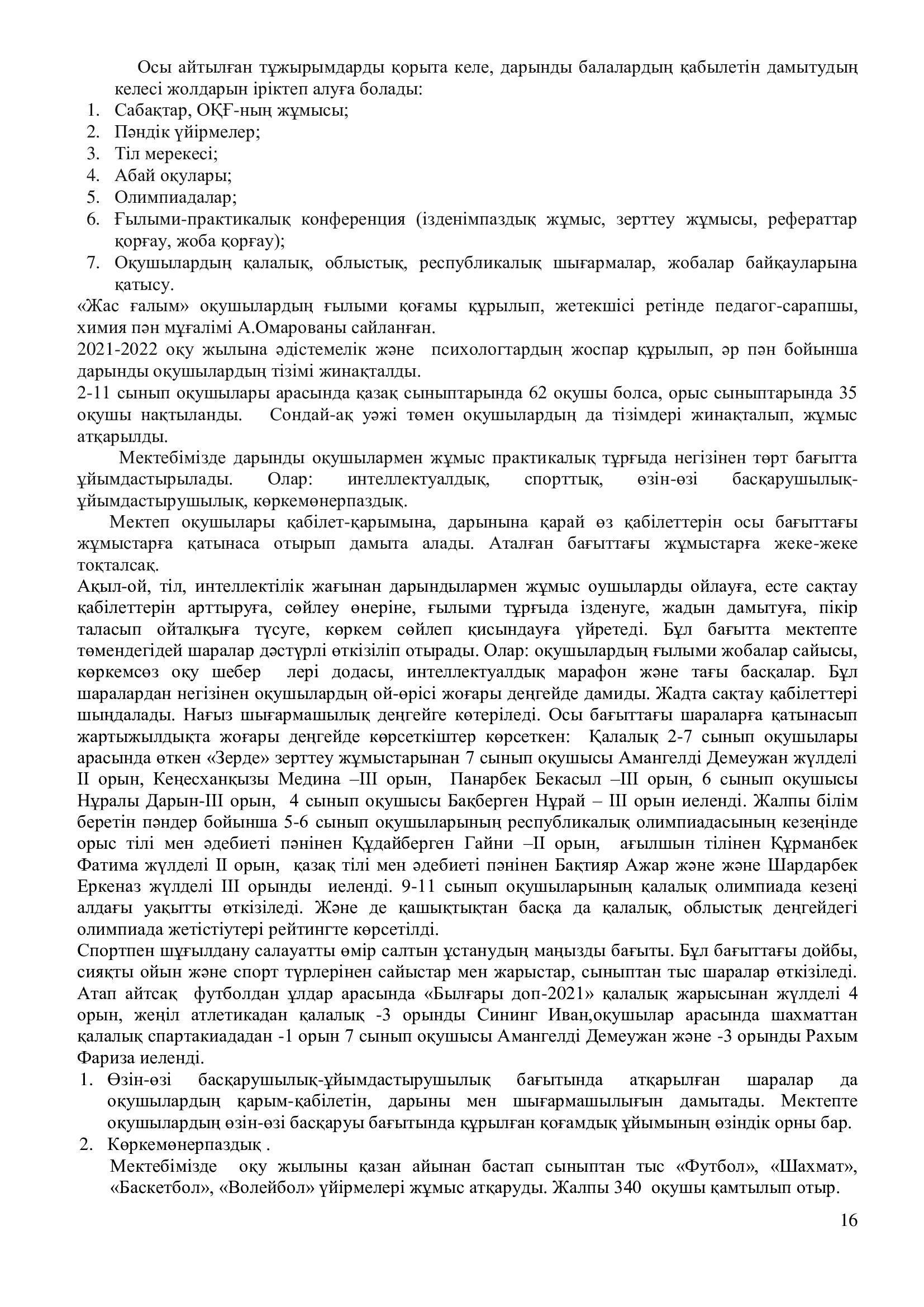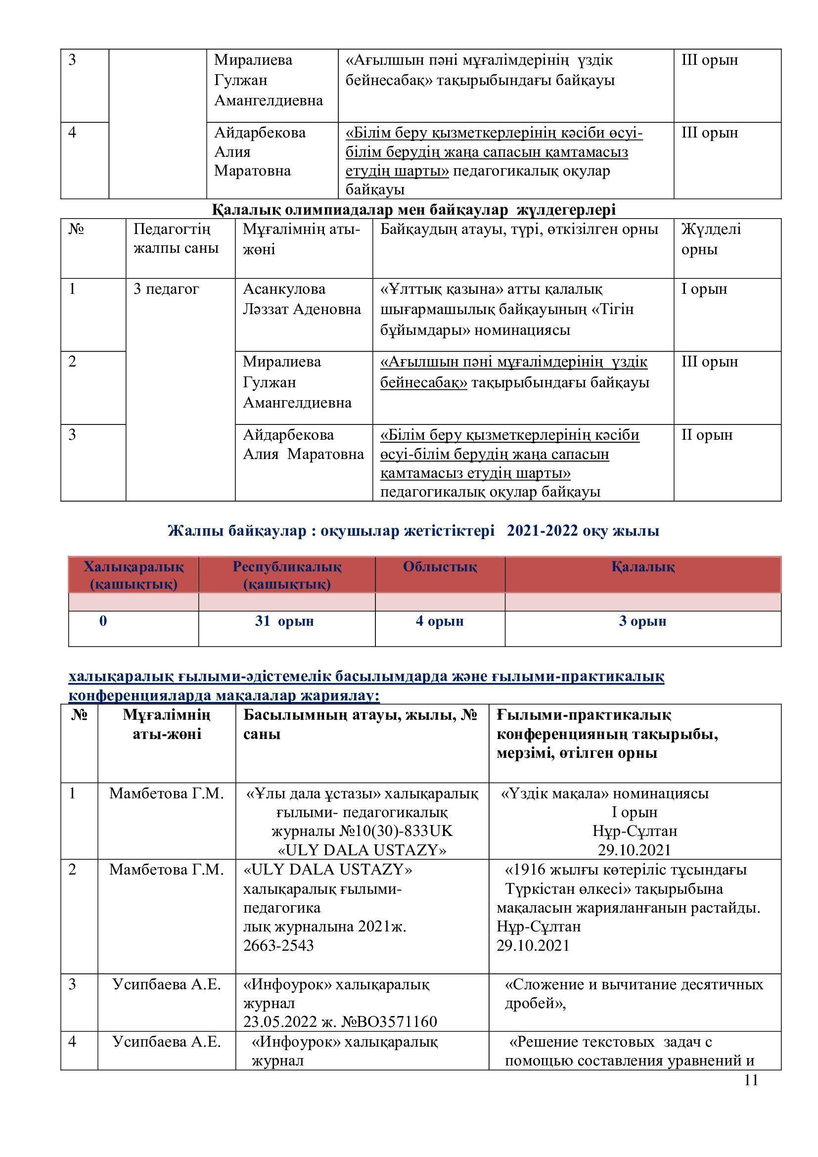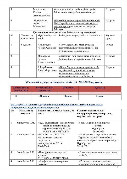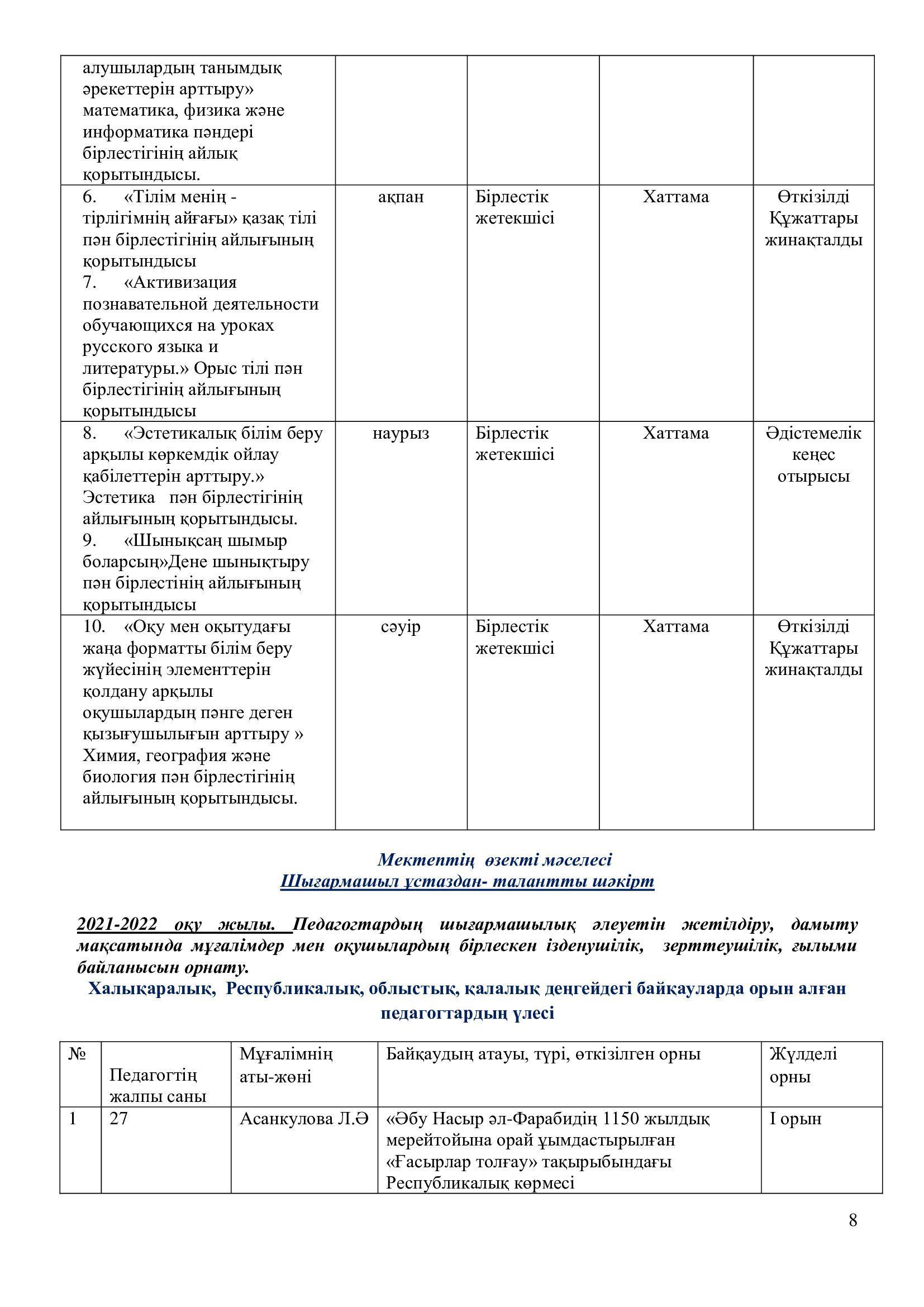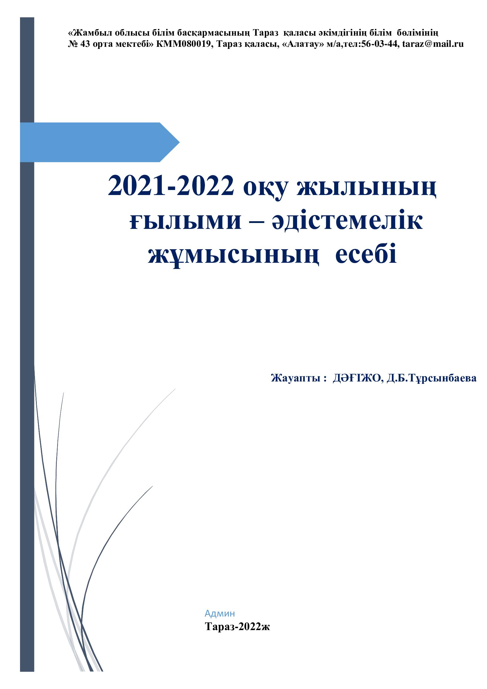 2021-2022 оқу жылының ғылыми – әдістемелік жұмысының есебі.