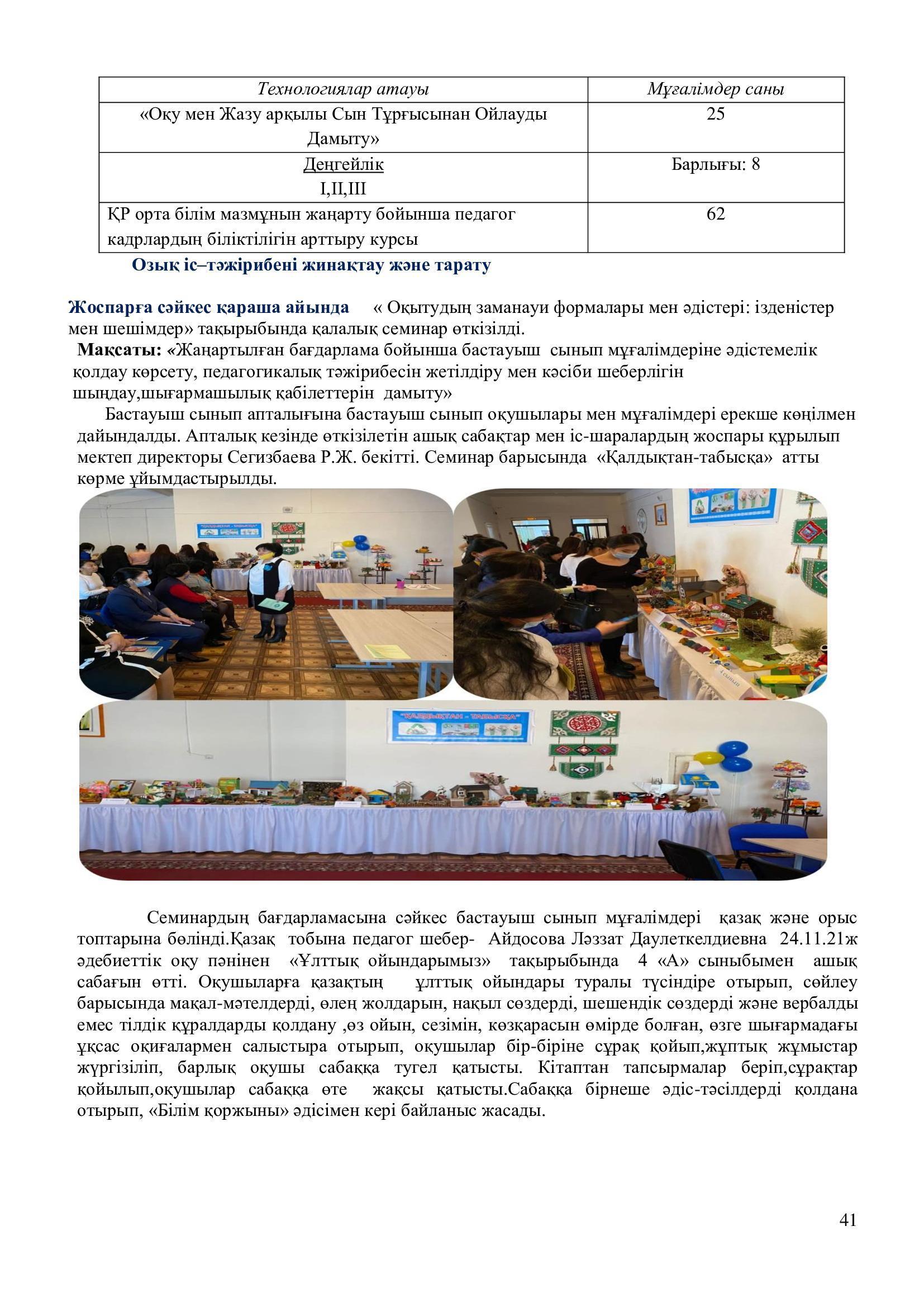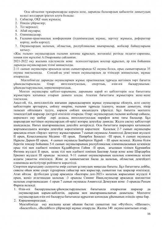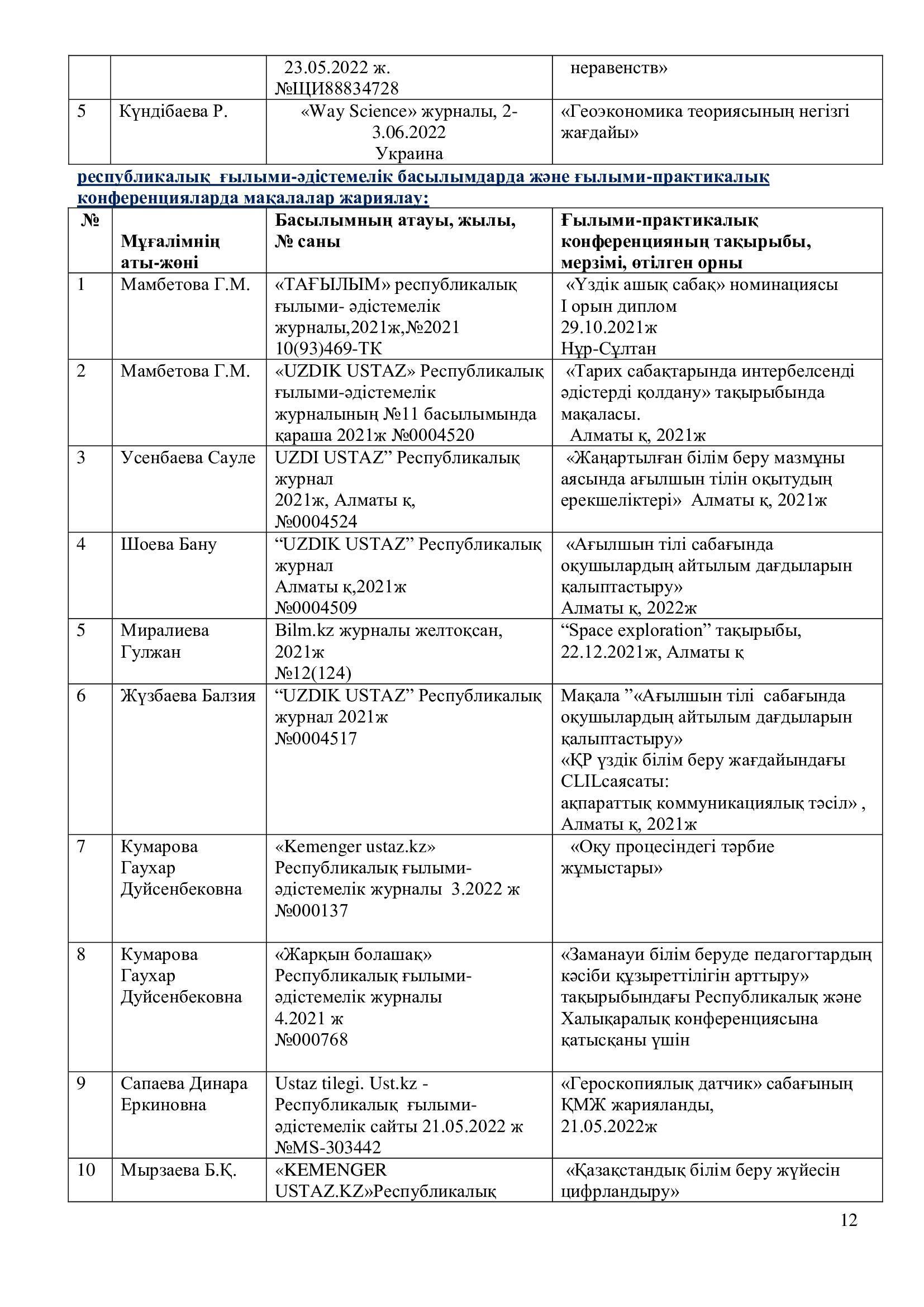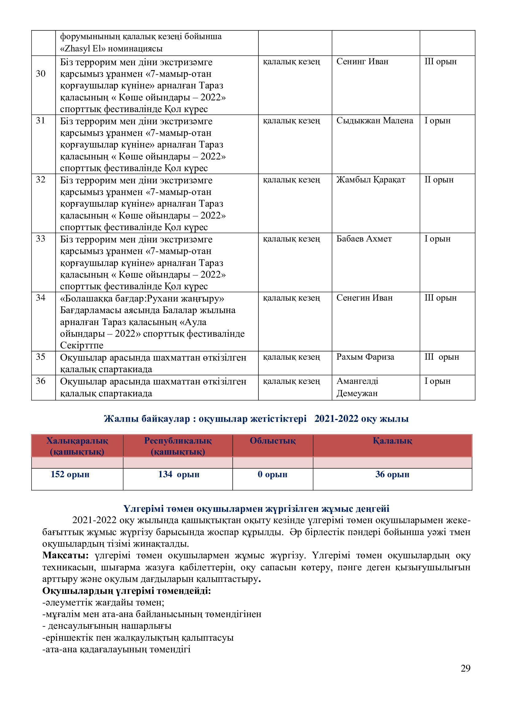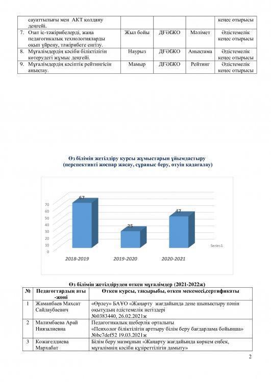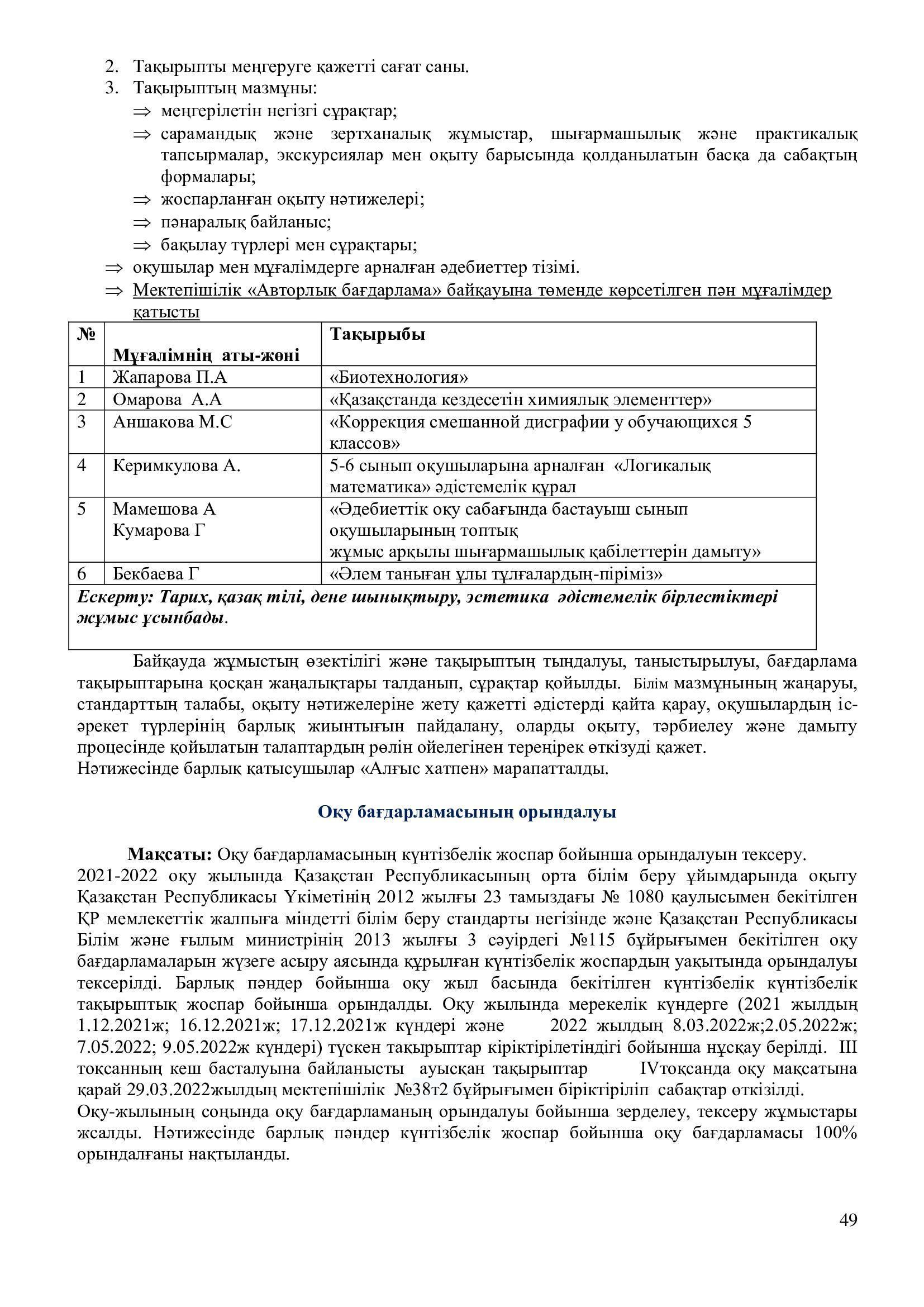 2021-2022 оқу жылының ғылыми – әдістемелік жұмысының есебі.