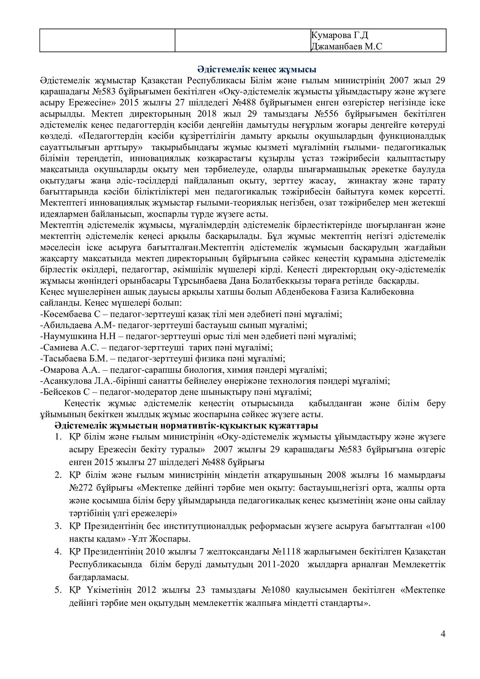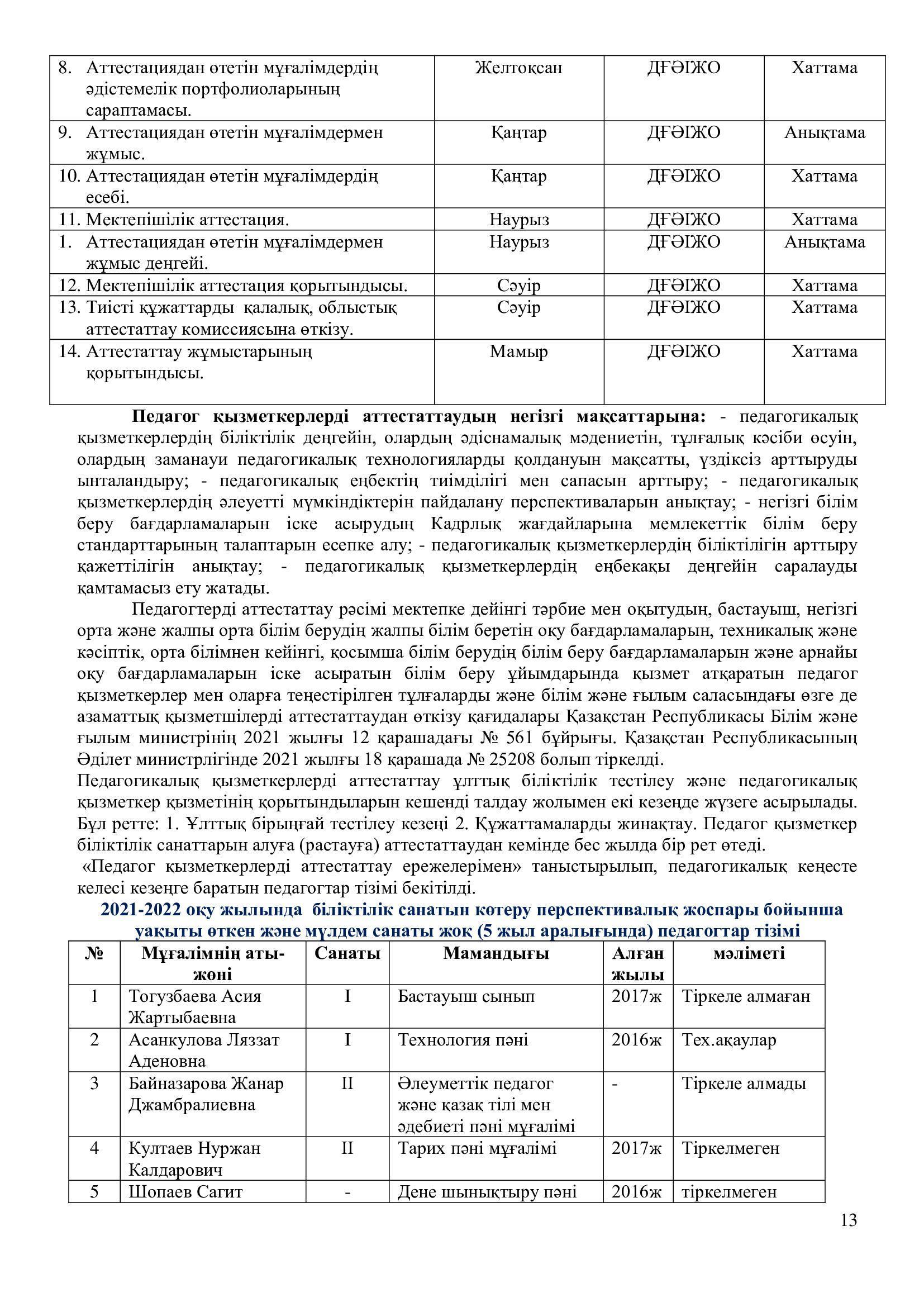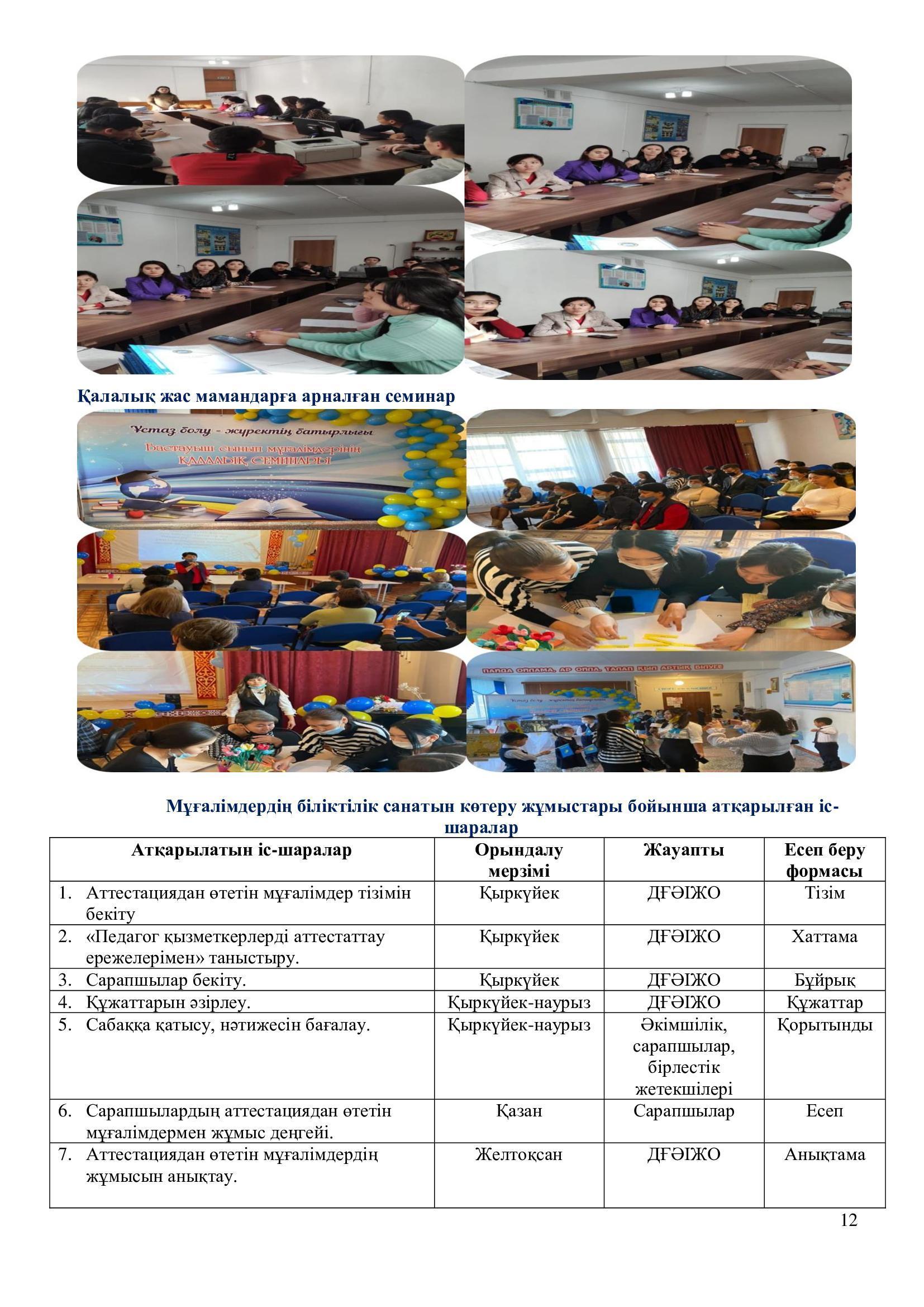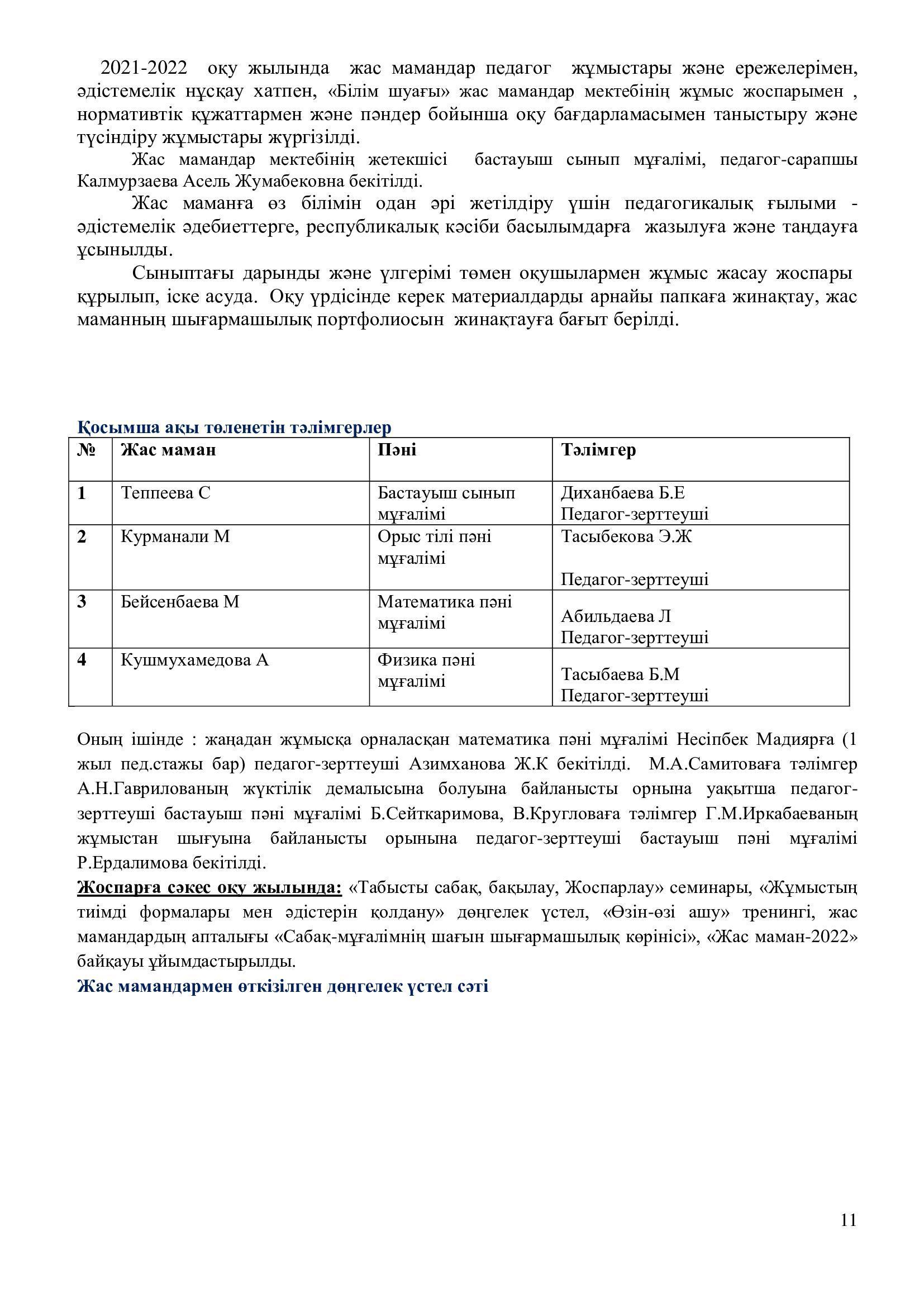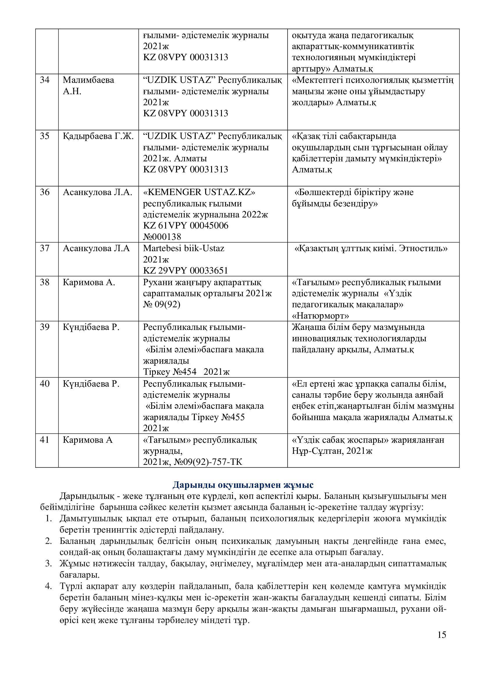 2021-2022 оқу жылының ғылыми – әдістемелік жұмысының есебі.