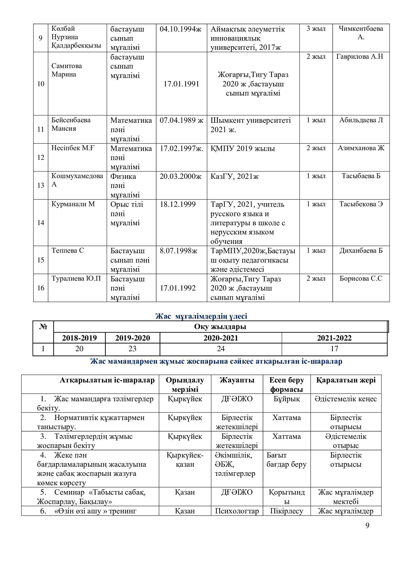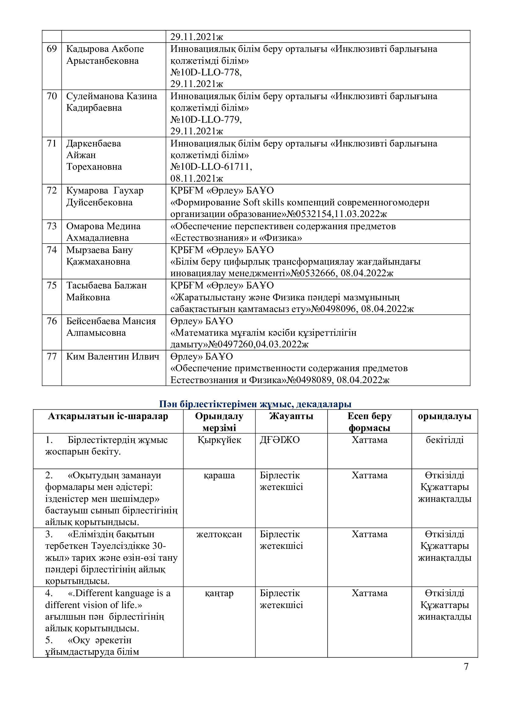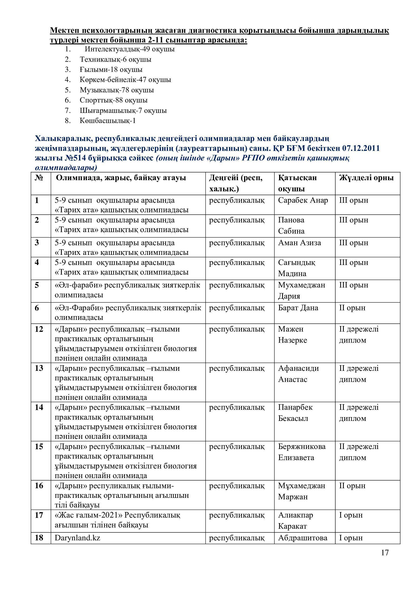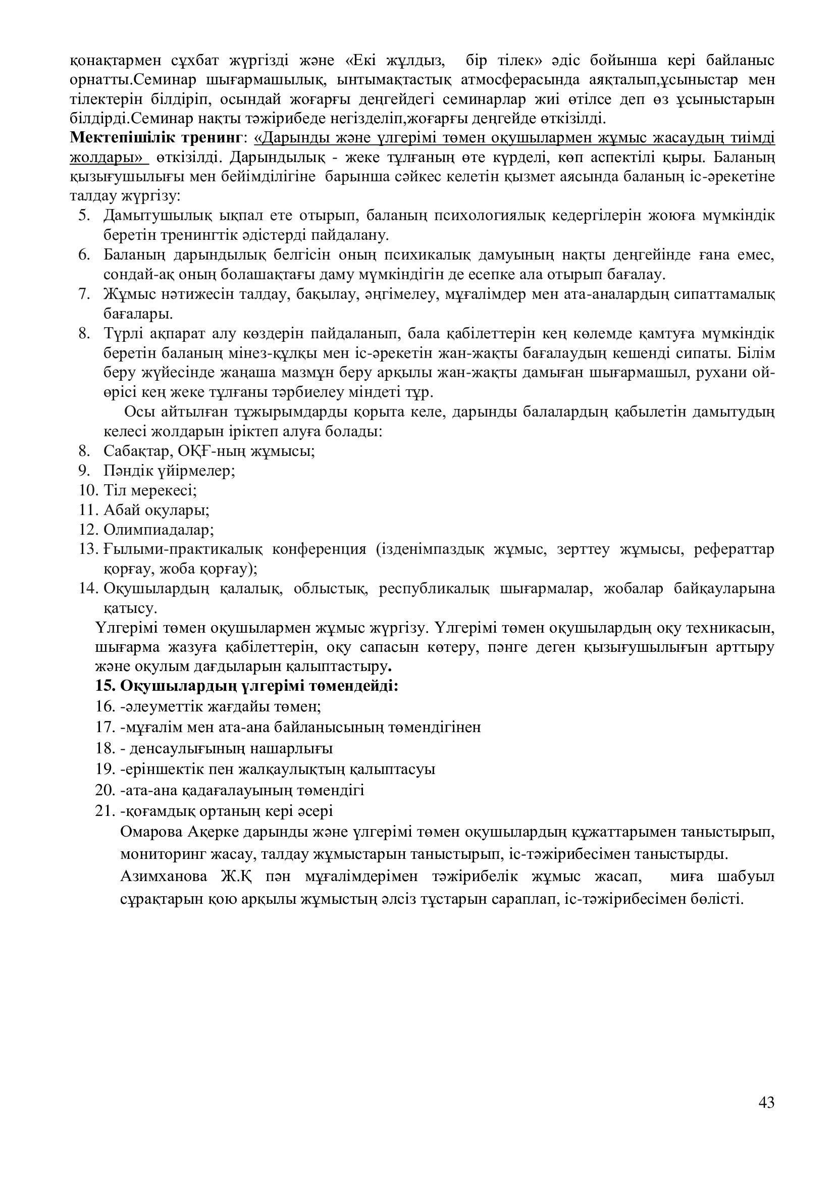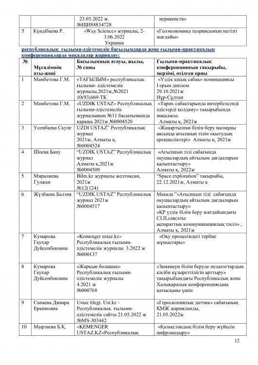 2021-2022 оқу жылының ғылыми – әдістемелік жұмысының есебі.