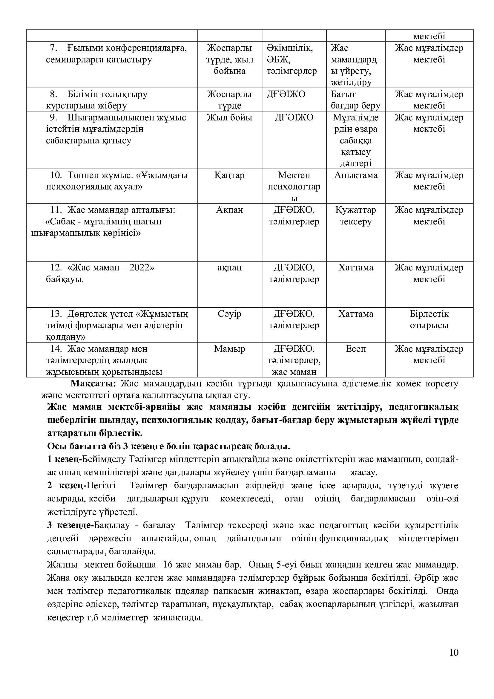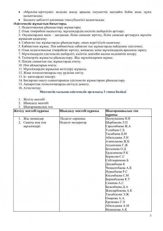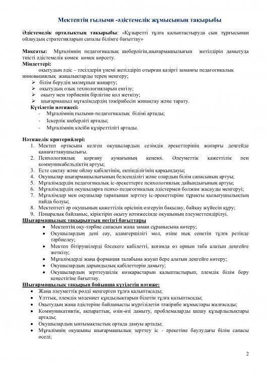 Мақсаты: Мұғалімнің педагогикалық шеберлігін,шығармашылығын жетілдіріп дамытуда тиісті әдістемелік көмек көмек көрсету.