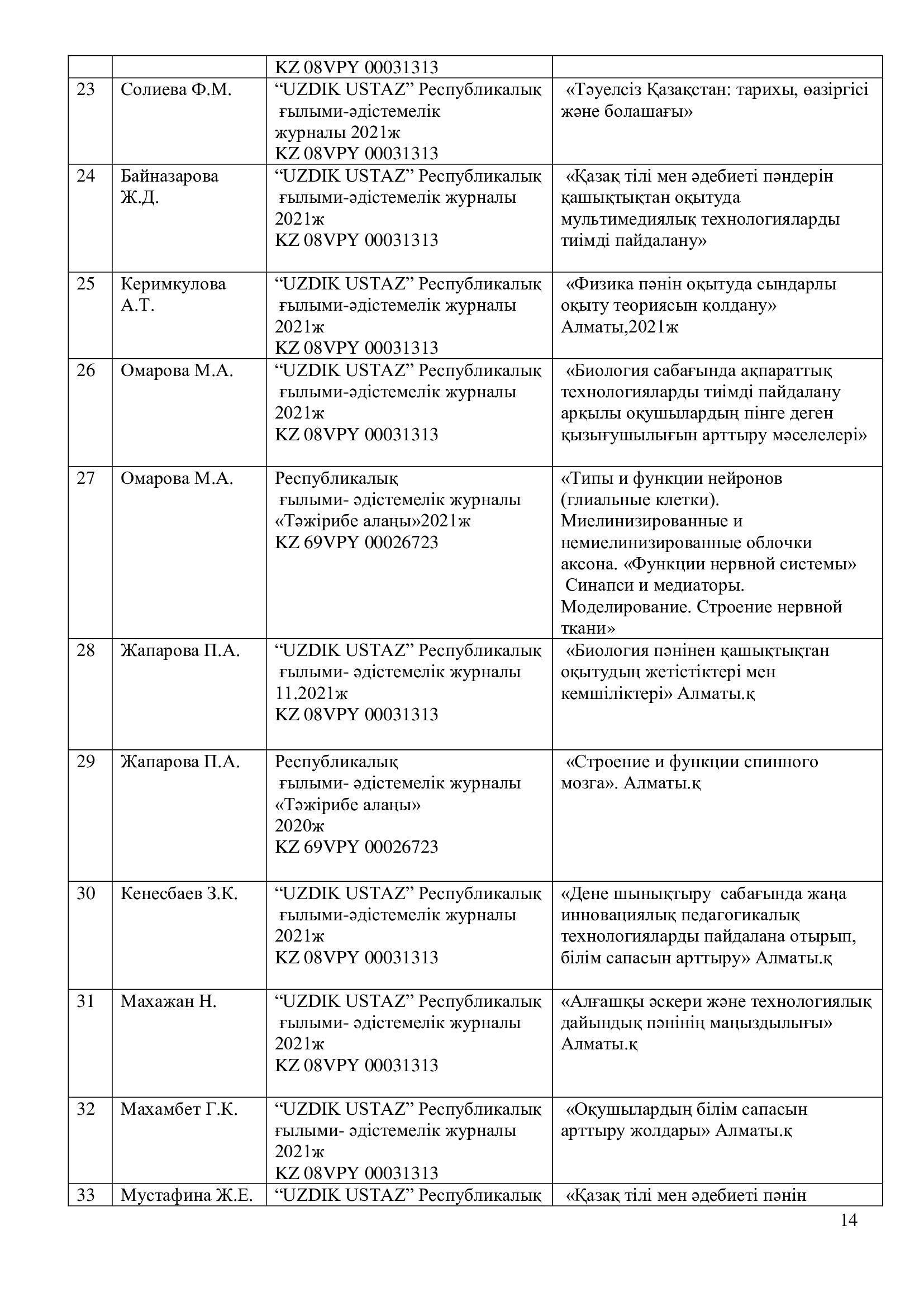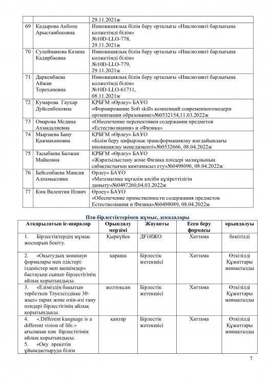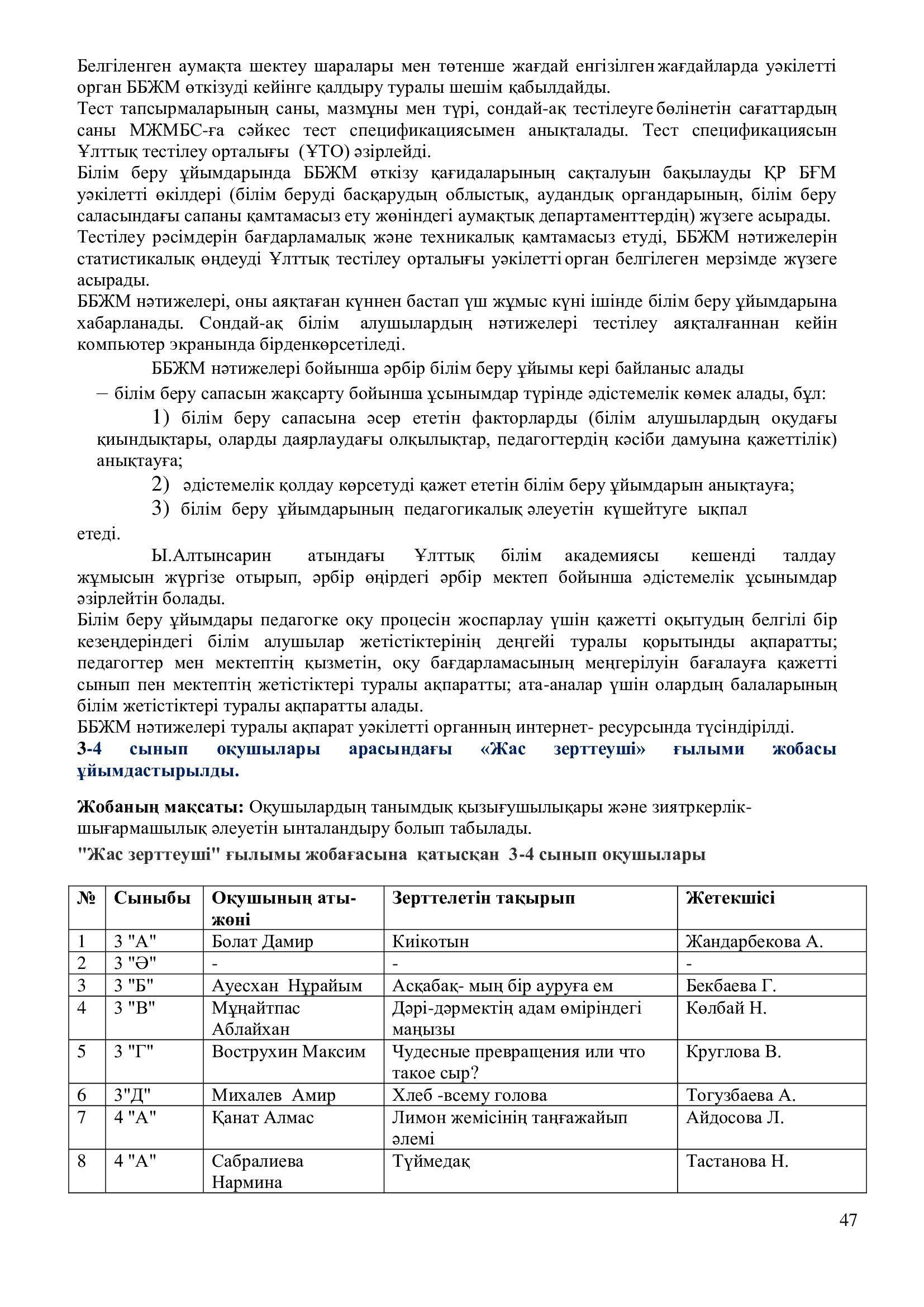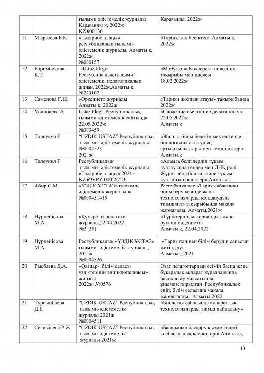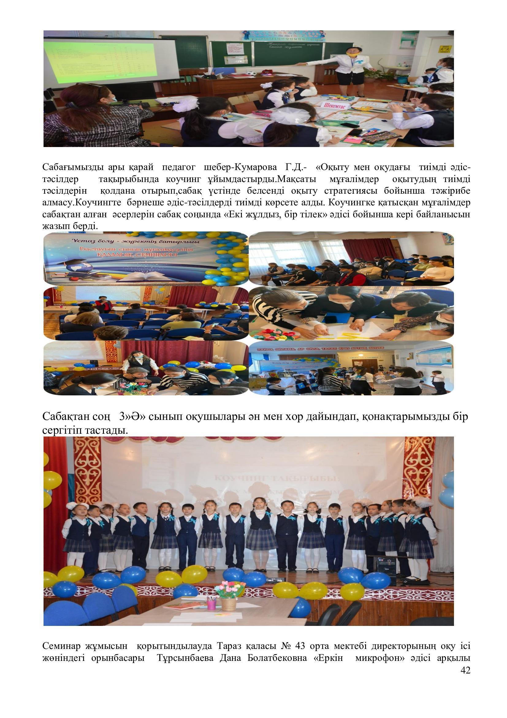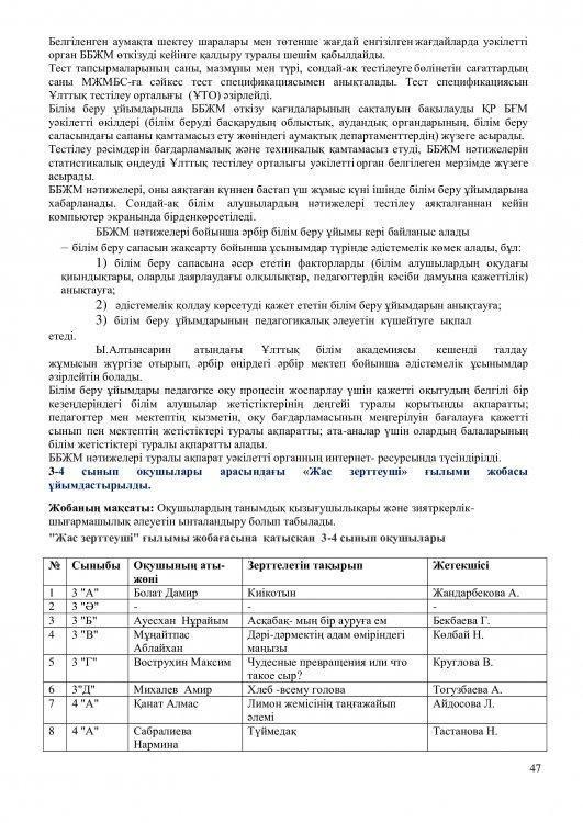 -шығармашыл мұғалімдердің тәжірибесін жинақтау және тарату.