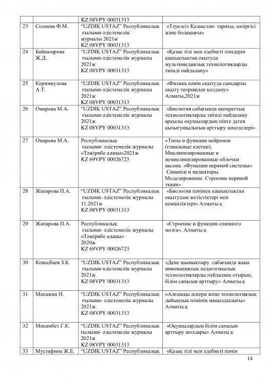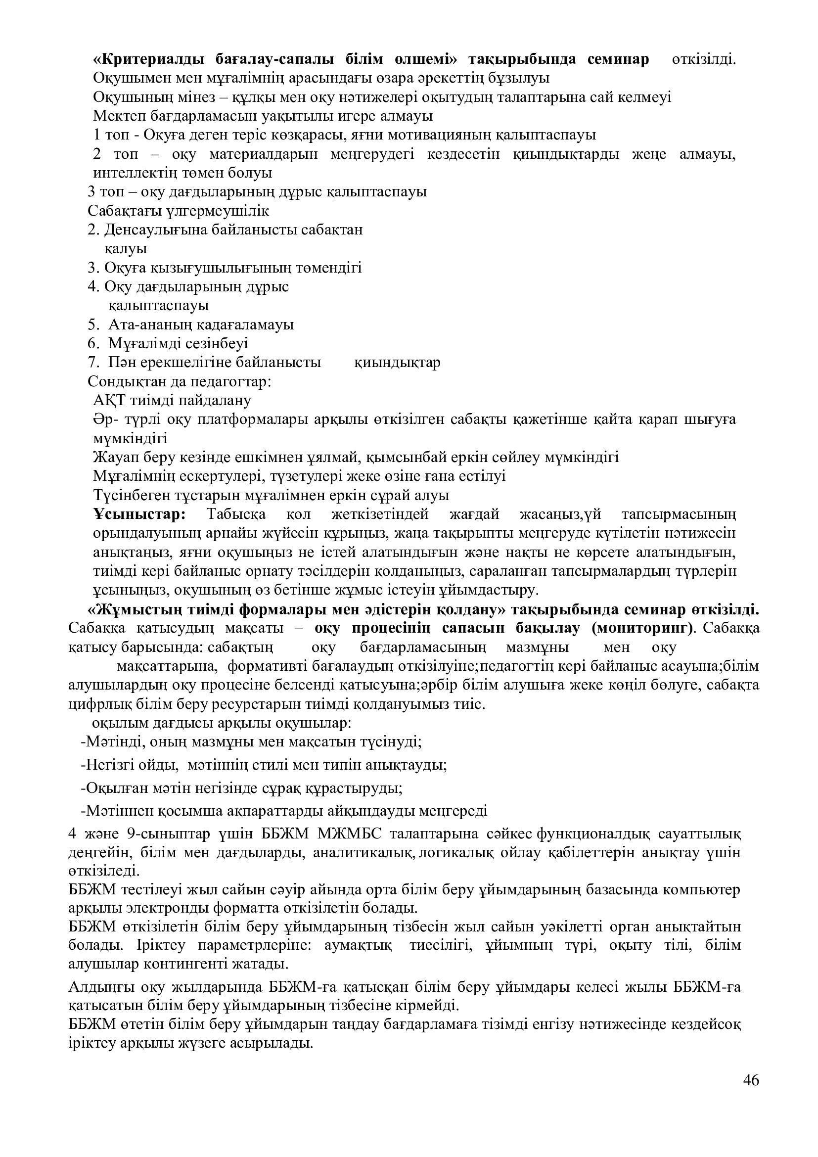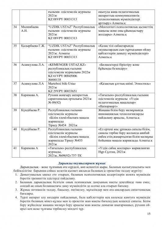 -оқытудың әдіс – тәсілдерін үнемі жетілдіріп отырған қазіргі заманғы педагогикалық инновациялық жаңалықтарды терең меңгеру;