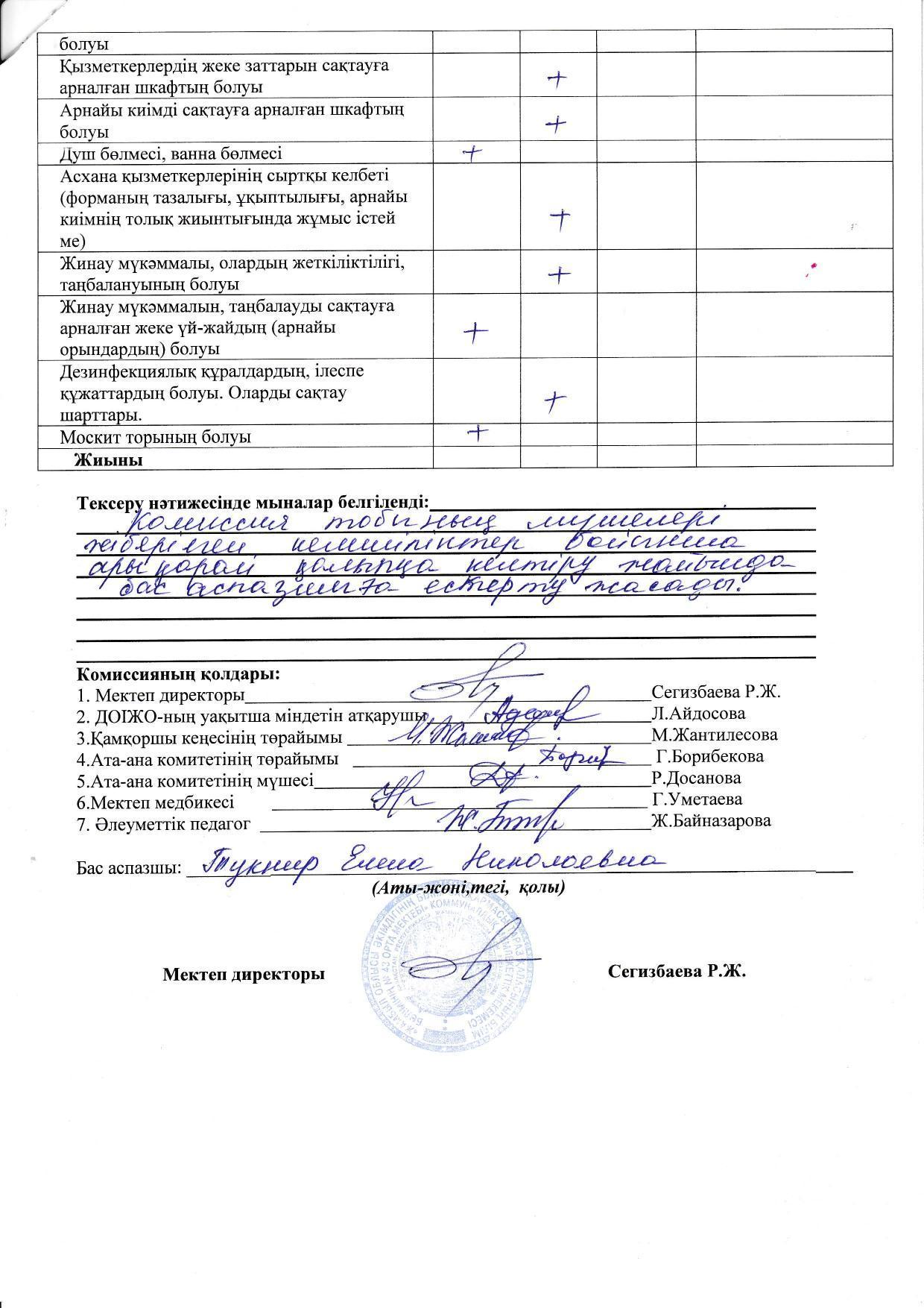 Бракераждық комиссия мүшелері тексеру жұмыстарының актісі » 43 орта мектебі