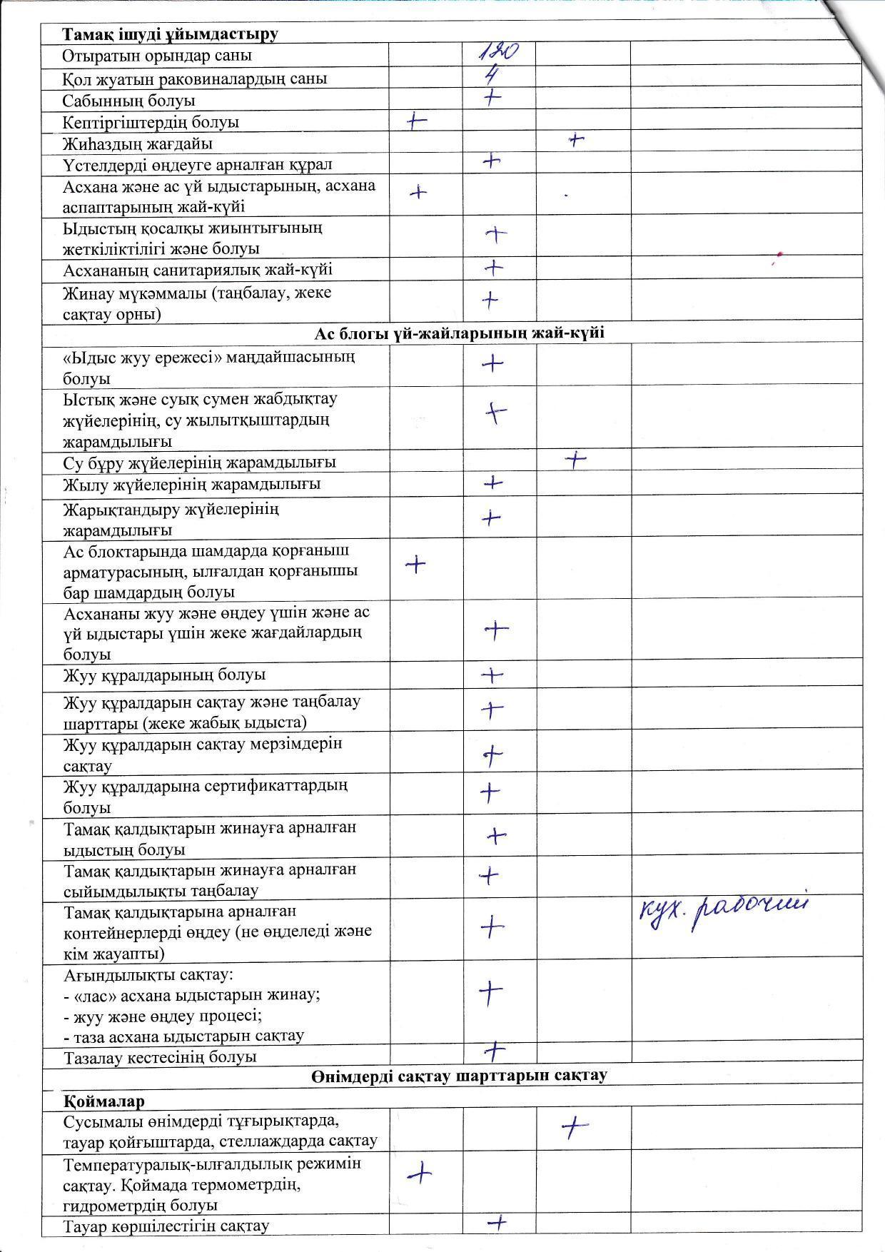 » » » Тамақтану сапасына мониторинг жүргізу актісі