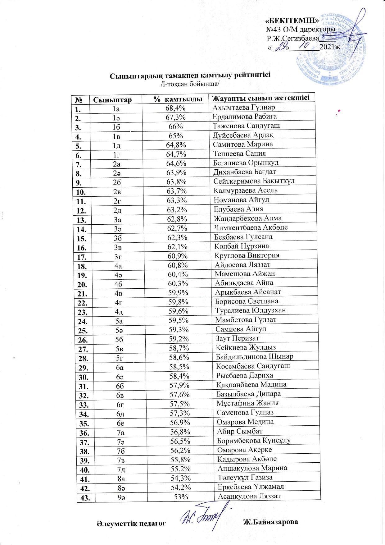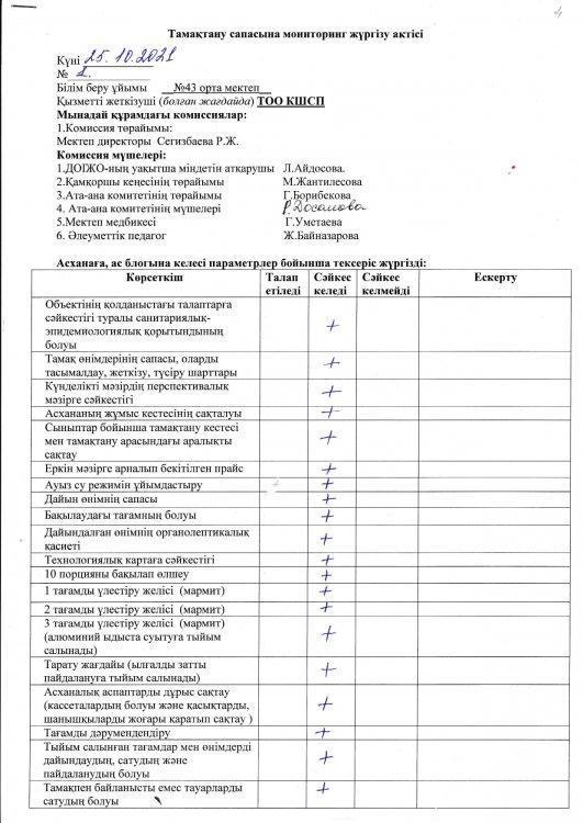 Тамақтану сапасына мониторинг жүргізу актісі » 43 орта мектебі