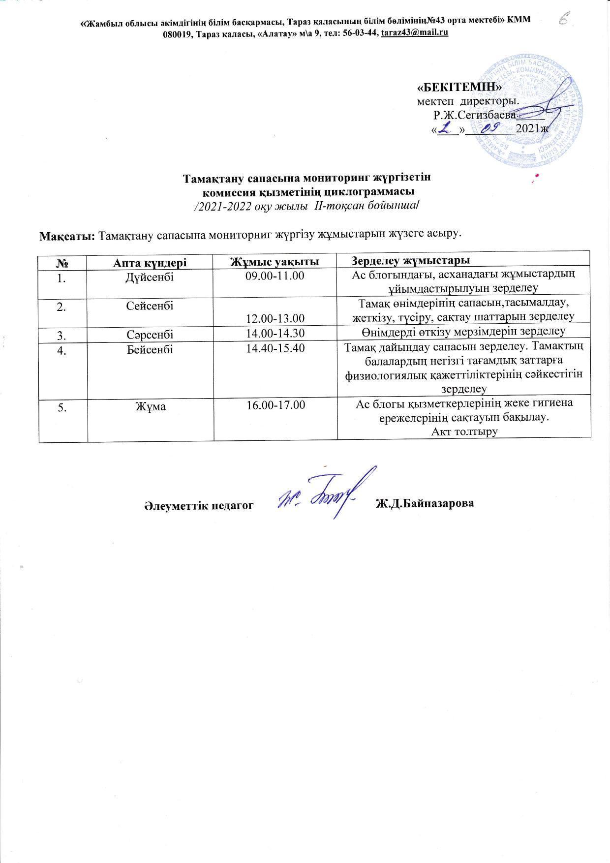Тамақтану сапасына мониторинг жүргізу актісі » 43 орта мектебі