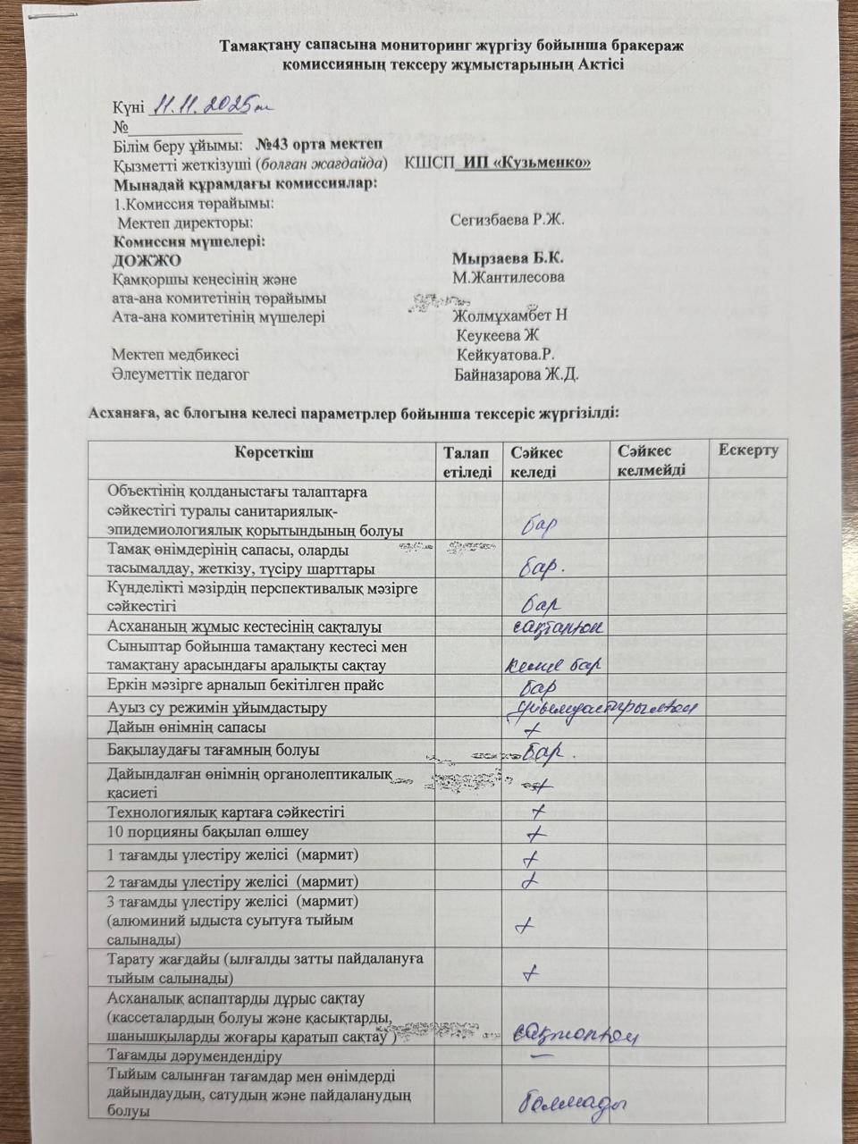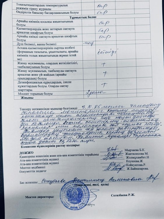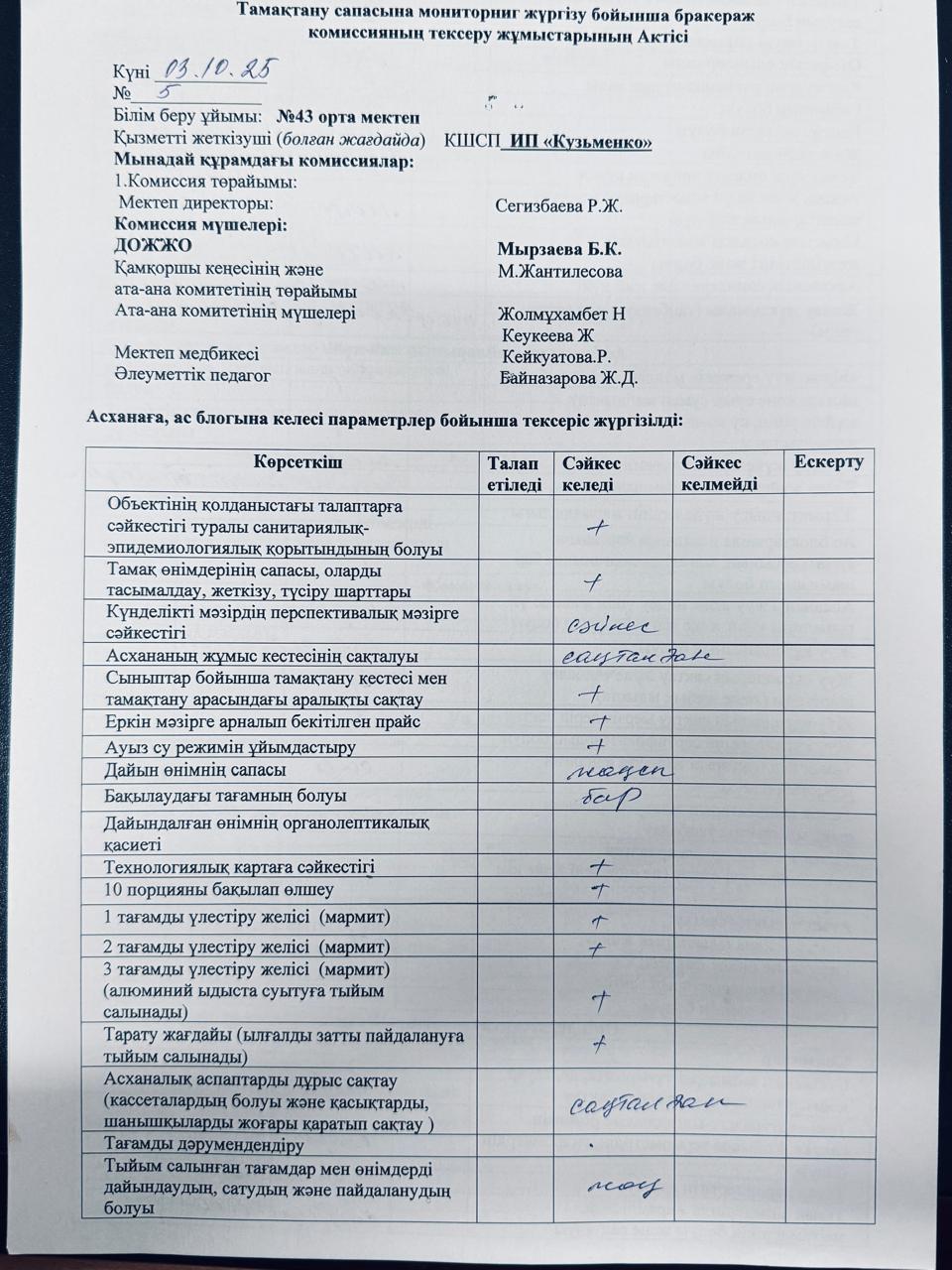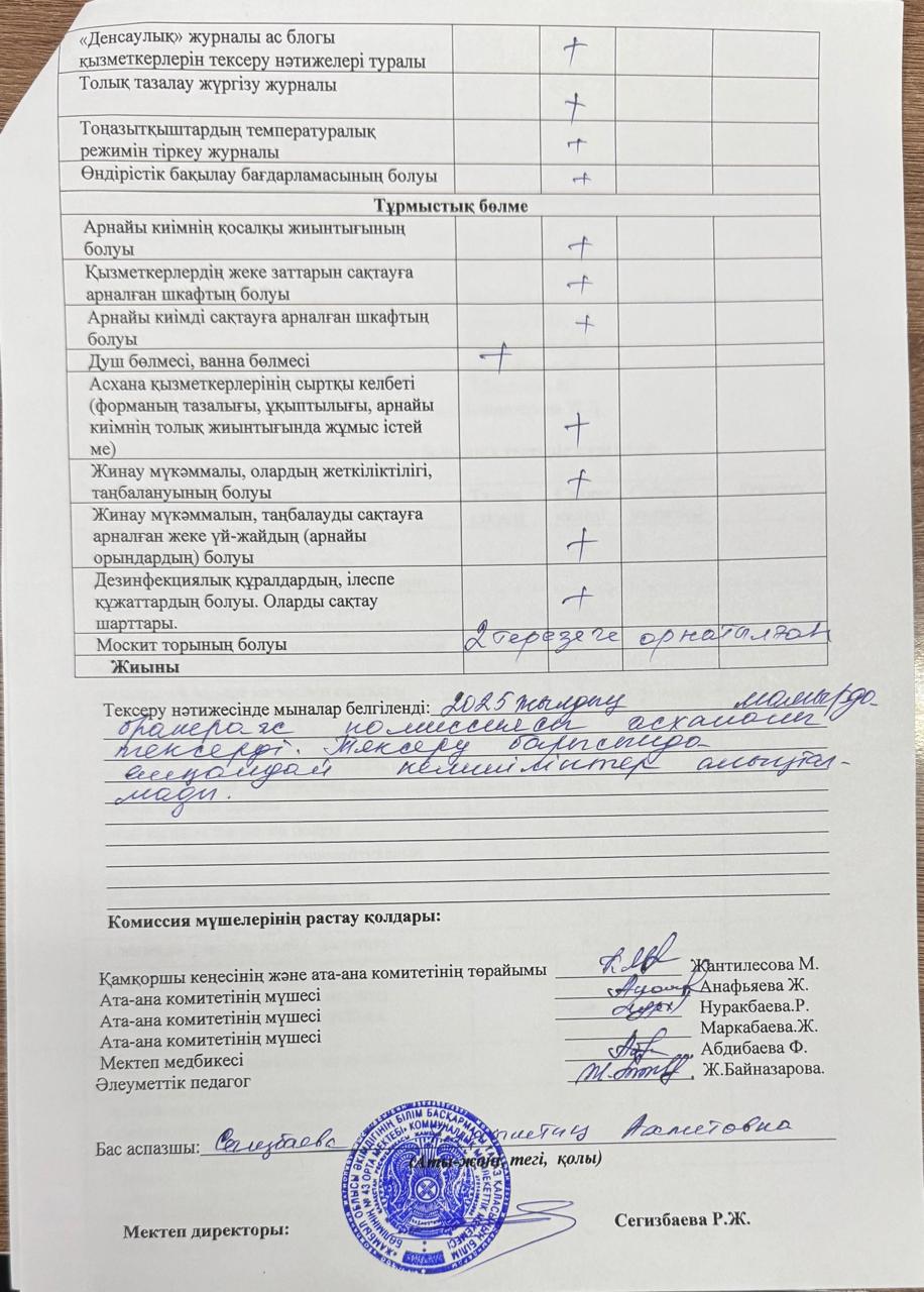 03.10.2025 жылы тамақтану сапасына мониторинг жүргізу бойынша жалпы асхананың жұмысы тексерілді. Тексерілген жұмыстарға Акт толтырылып, қол қойылд https://43-taraz.mektebi.kz/pitanie/brokerazhdy-kommissija/1007-03102025-zhyly-tamatanu-sapasyna-monitoring-zhrgzu-bojynsha-zhalpy-ashanany-zhmysy-tekserld-tekserlgen-zhmystara-akt-toltyrylyp-ol-ojyld.html https://43-taraz.mektebi.kz/pitanie/brokerazhdy-kommissija/1007-03102025-zhyly-tamatanu-sapasyna-monitoring-zhrgzu-bojynsha-zhalpy-ashanany-zhmysy-tekserld-tekserlgen-zhmystara-akt-toltyrylyp-ol-ojyld.html