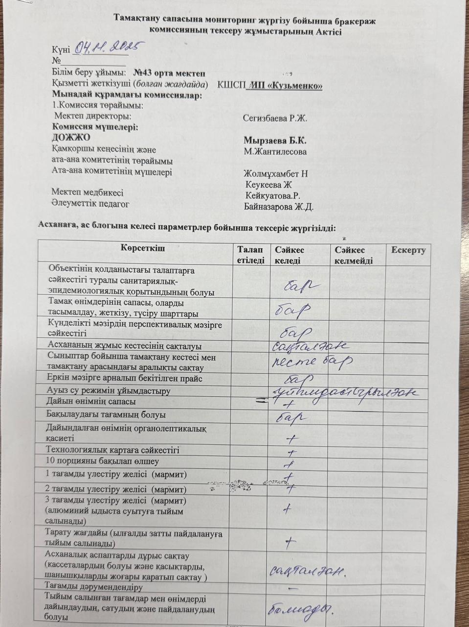 04.11.2025 жылы тамақтану сапасына мониторинг жүргізу бойынша жалпы асхананың жұмысы тексерілді. Тексерілген жұмыстарға Акт толтырылып, қол қойылды https://43-taraz.mektebi.kz/pitanie/brokerazhdy-kommissija/1023-04112025-zhyly-tamatanu-sapasyna-monitoring-zhrgzu-bojynsha-zhalpy-ashanany-zhmysy-tekserld-tekserlgen-zhmystara-akt-toltyrylyp-ol-ojyldy.html https://43-taraz.mektebi.kz/pitanie/brokerazhdy-kommissija/1023-04112025-zhyly-tamatanu-sapasyna-monitoring-zhrgzu-bojynsha-zhalpy-ashanany-zhmysy-tekserld-tekserlgen-zhmystara-akt-toltyrylyp-ol-ojyldy.html