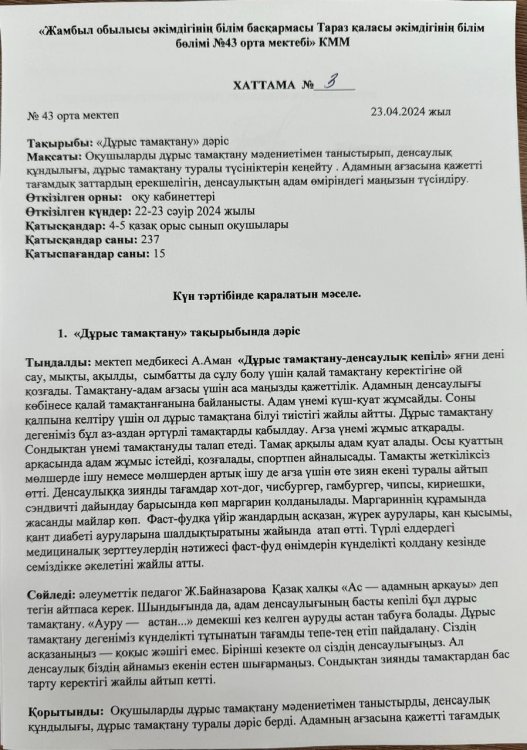 Ата-аналарға - 43 орта мектебі https://43-taraz.mektebi.kz/ ru Ата-аналарға - 43 орта мектебі DataLife Engine 22-23.04.2024 жылы 4-5 қазақ орыс сынып оқушыларына мектеп медбикесі А. Аман және әлеуметтік педагог Ж. Байназарова «Дұрыс тамақтану» тақырыбында дәр https://43-taraz.mektebi.kz/roditelyam/654-22-23042024-zhyly-4-5-aza-orys-synyp-oushylaryna-mektep-medbikes-a-aman-zhne-leumettk-pedagog-zh-bajnazarova-drys-tamatanu-tayrybynda-dr.html https://43-taraz.mektebi.kz/roditelyam/654-22-23042024-zhyly-4-5-aza-orys-synyp-oushylaryna-mektep-medbikes-a-aman-zhne-leumettk-pedagog-zh-bajnazarova-drys-tamatanu-tayrybynda-dr.html